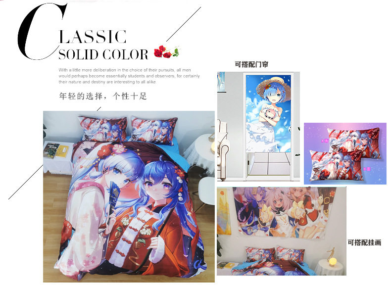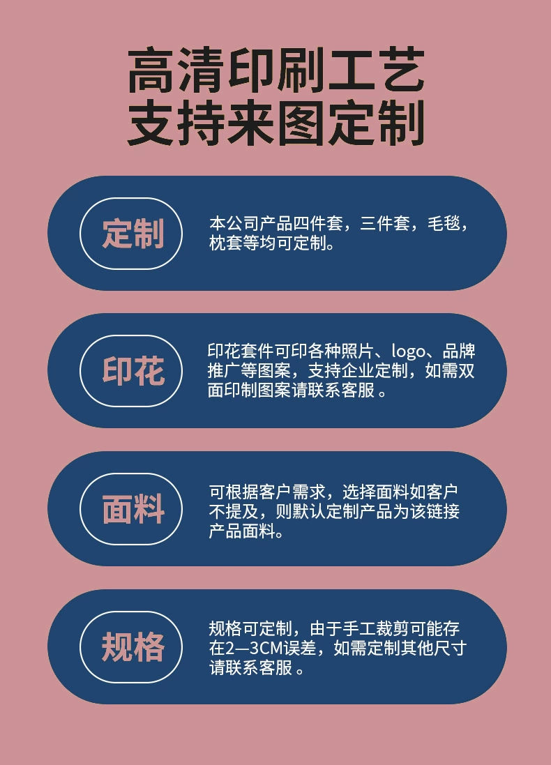 | Flower type | C1 style 40 count twill pure cotton quilt cover pillowcase front printing,C2 style 40 count twill pure cotton quilt cover pillowcase front + sheet printing,C3 model 40 count twill pure cotton quilt cover pillowcase double-sided + bed sheet printing,C4 model 60 count satin cotton quilt cover pillowcase front punched,C5 60-count satin cotton quilt cover pillowcase front + sheet printing,C6 model 60 count satin cotton quilt cover pillowcase double-sided + sheet printing |