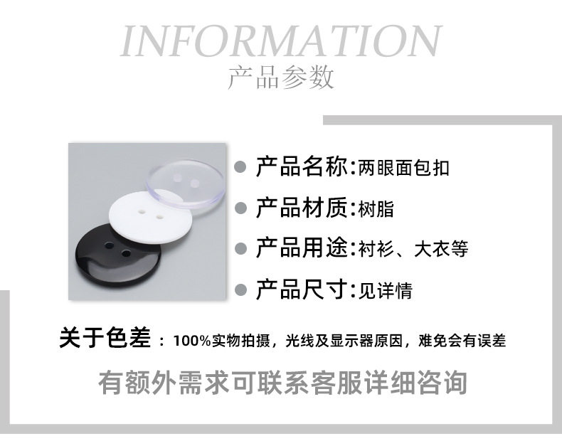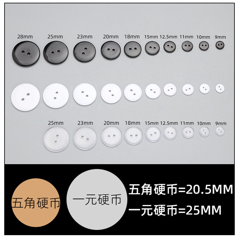 Resin Two-Eye Buttons, Versatile Shirts, Universal Transparent Small Buttons, Black and White Coats, Windbreakers, Round Buttons