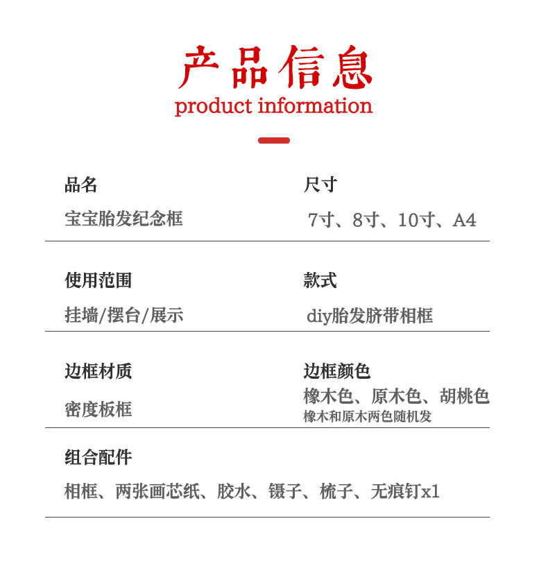 Baby Fetal Hair Photo Frame Newborn Baby Fetal Hair Umbilical Cord Collection Souvenir Homemade DIY Creative Storage Table Frame