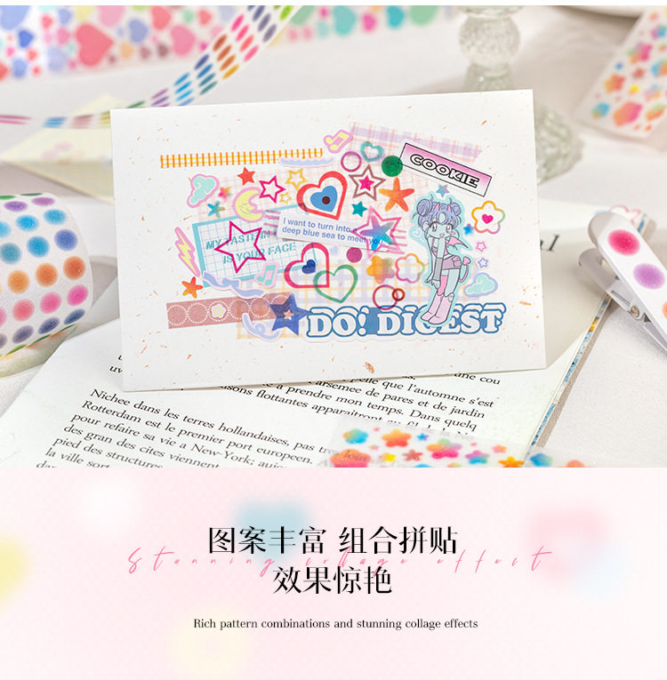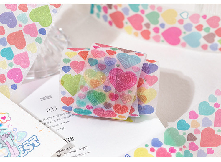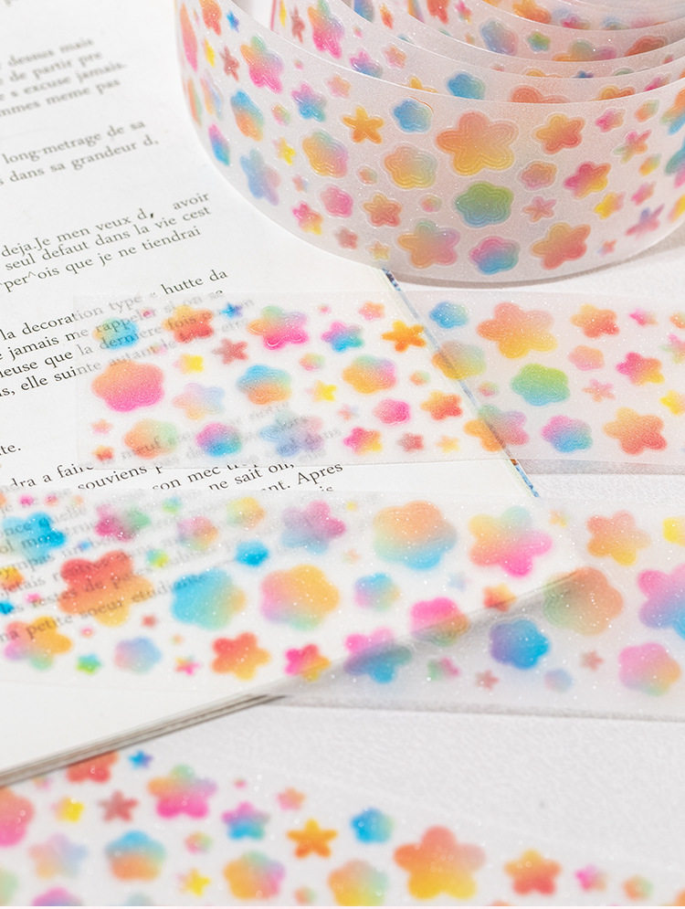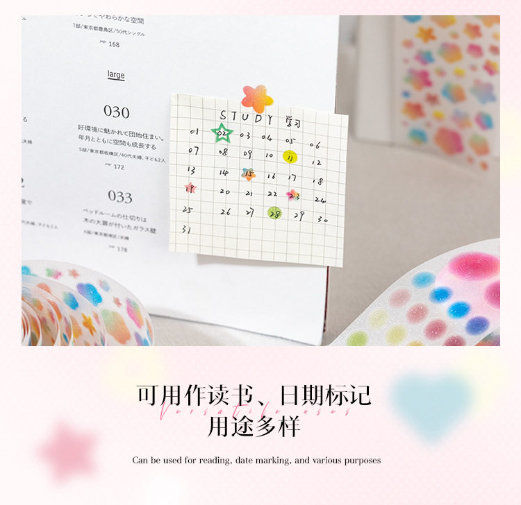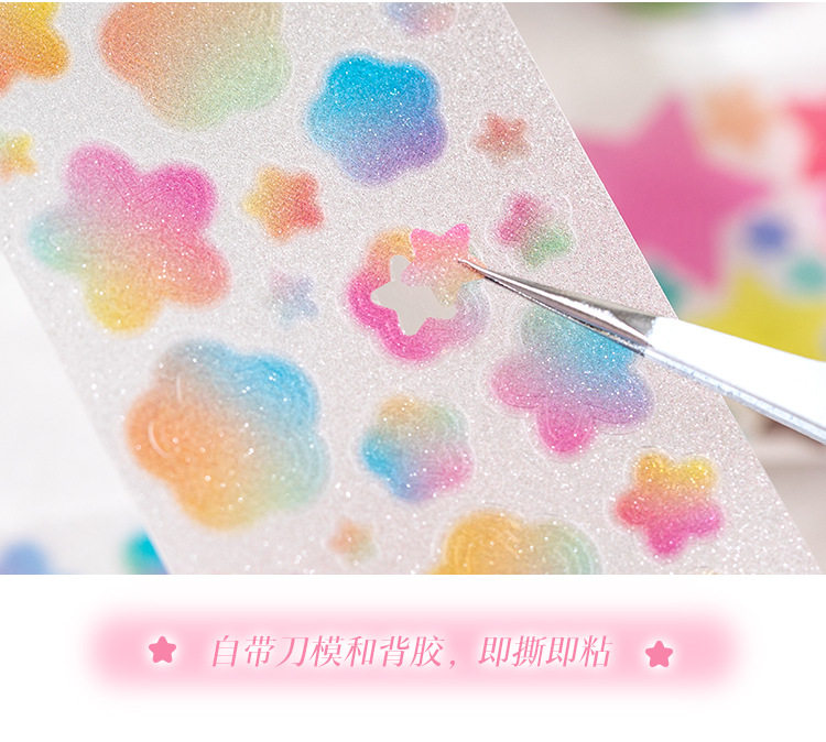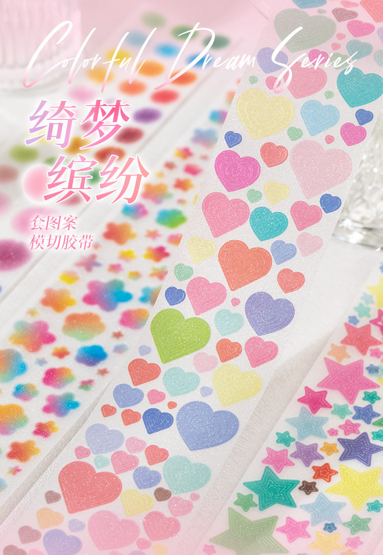 Patterned Pet Die-Cut Tape with Colorful Dreams, Heart Stars, Versatile Planner DIY Decoration Stickers