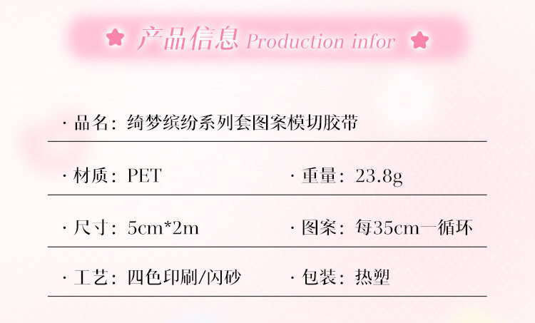 | Color | Star fantasy 5cm*2m,Flower world 5cm*2m,Sugar dream circle 5cm*2m,Thrilling heart 5cm*2m |