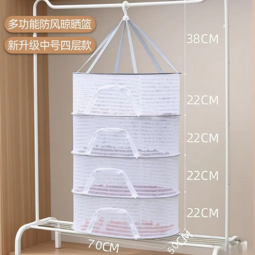 Household Multi-Functional Windproof Clothes Basket Clothes and Socks Three-Layer Flat Drying Net Convenient Foldableable Drying Artifact