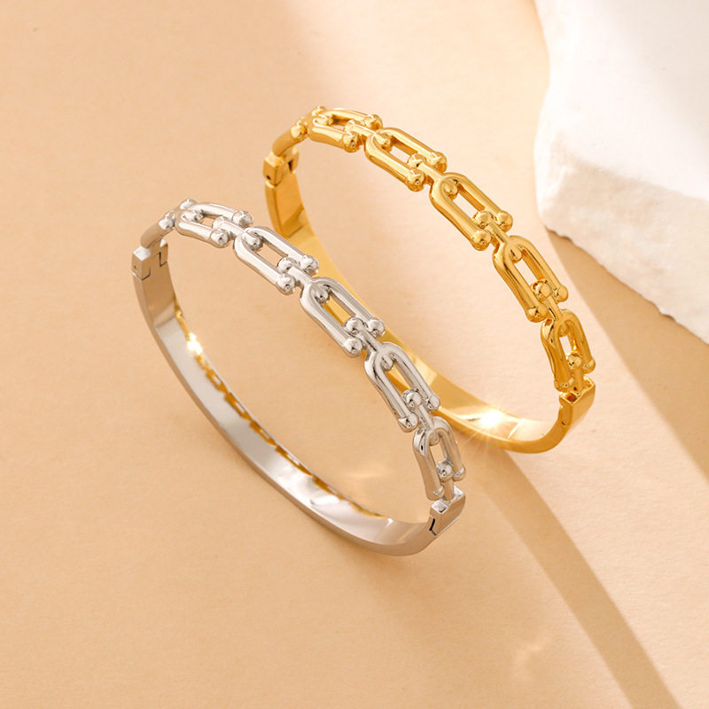 Titanium Steel Minimalist U-Shaped Horseshoe Buckle Bracelet Cross-Border Hot Sale Vacuum Furnace Electroplated Smooth Stainless Steel Bracelet