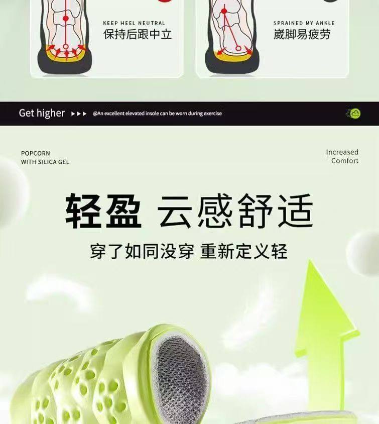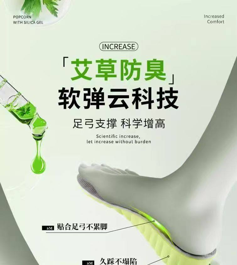Xinyangdao Yunduo Deodorant Heightening Insole for Men, Sweat-Absorbent, Deodorant, Sports Shock-Absorbing, Invisible Anti-Pain, Women's Inner Heightening Insole