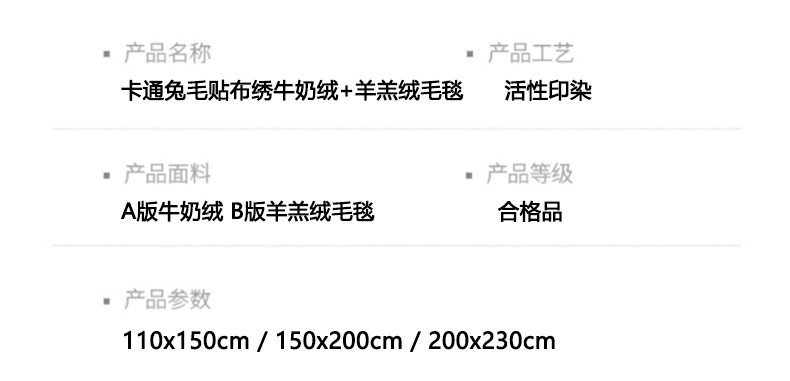 | Size Specifications | One 110x150cm blanket,One 150x200cm blanket,A 200x230cm blanket |