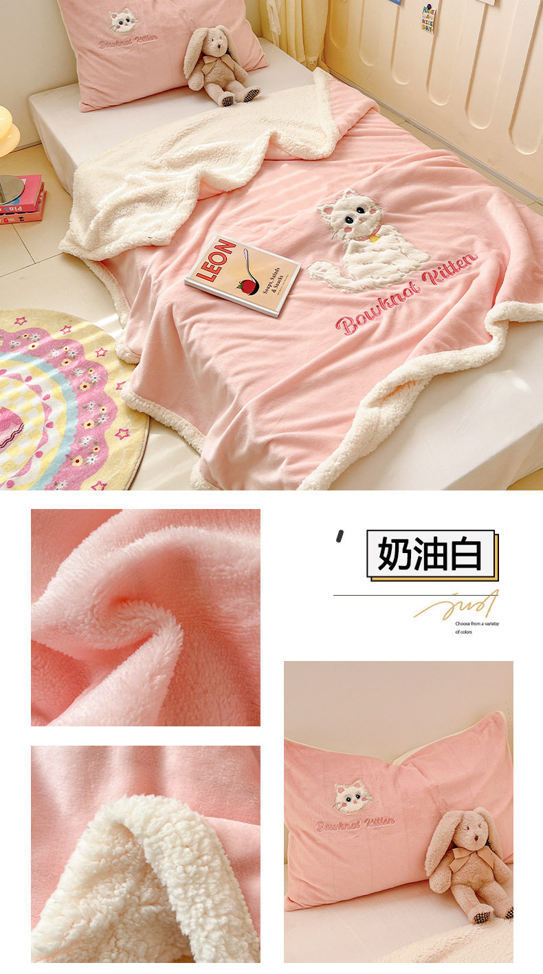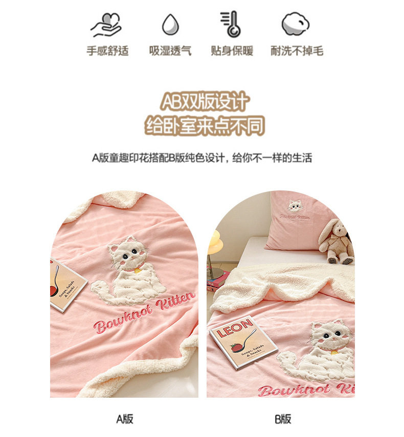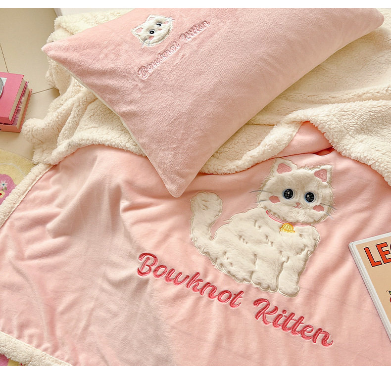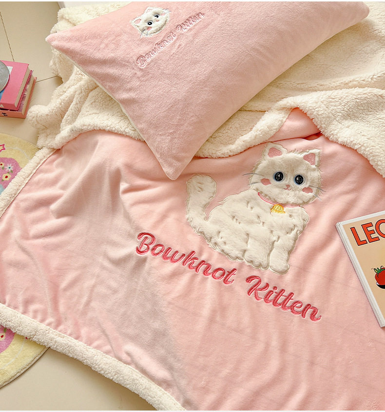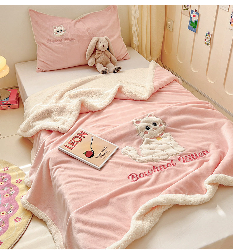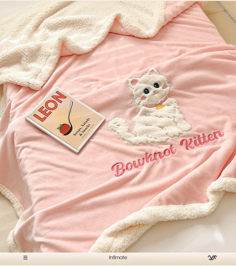 Category a Ins Cartoon Patch Embroidered Cat Milk Plush Blanket Office Sofa Cashmere Kidsren's Air Conditioning Blanket