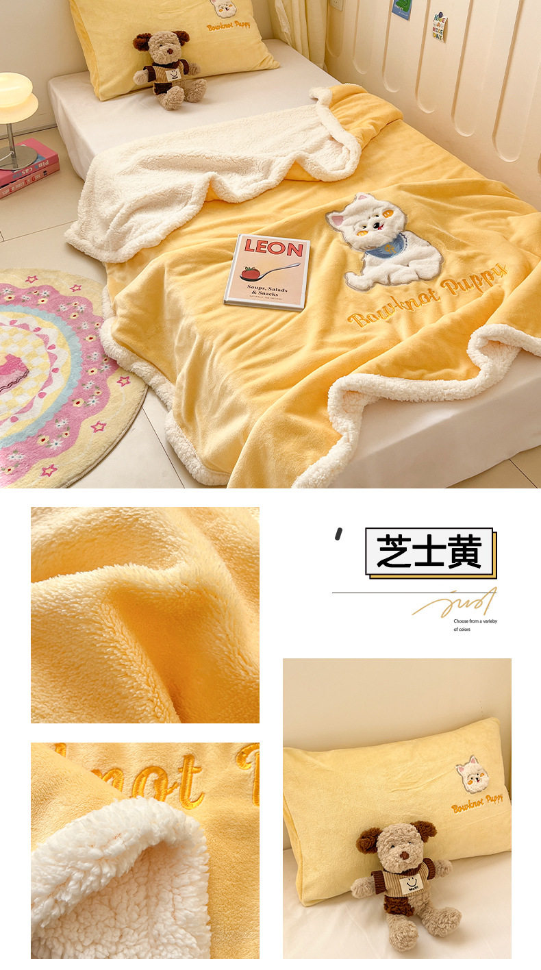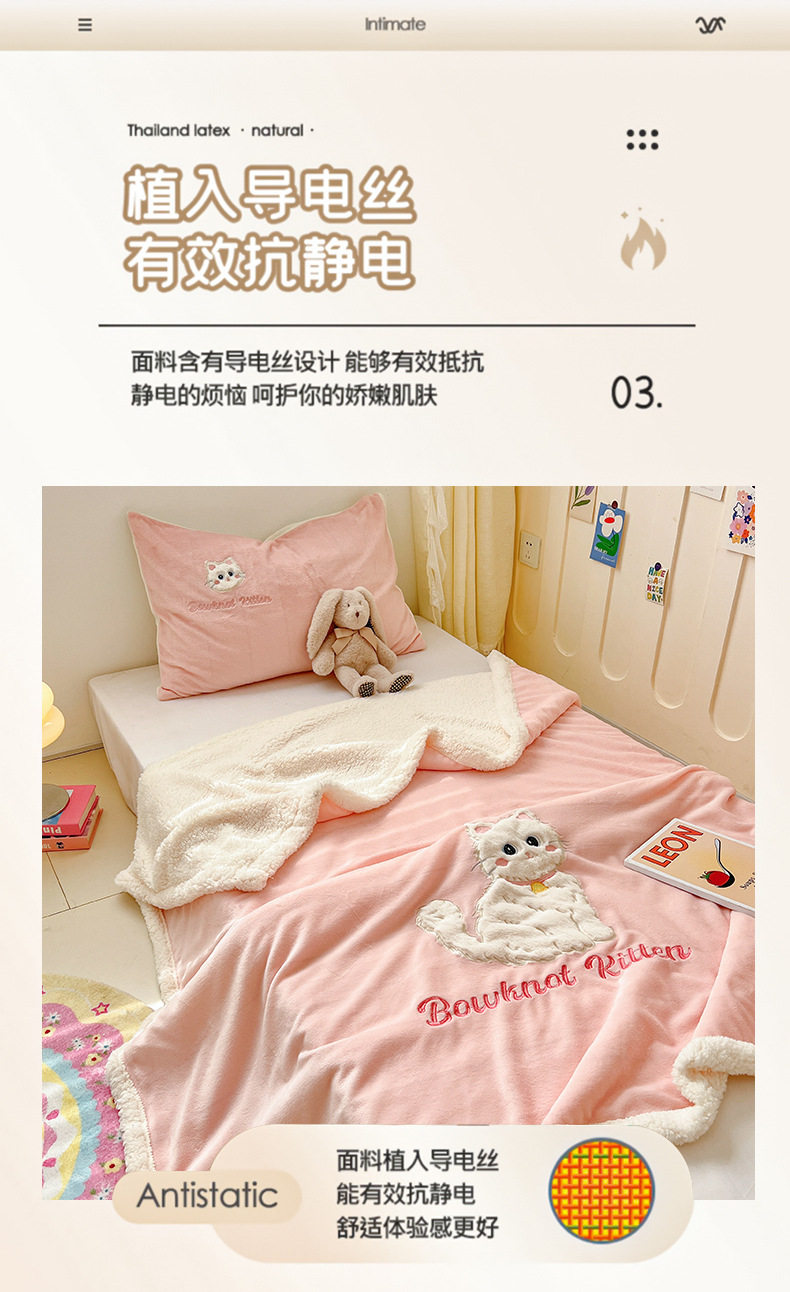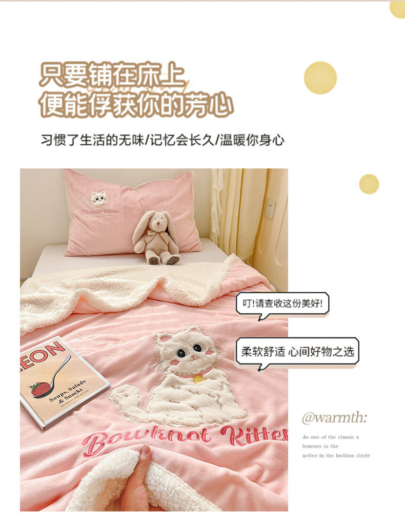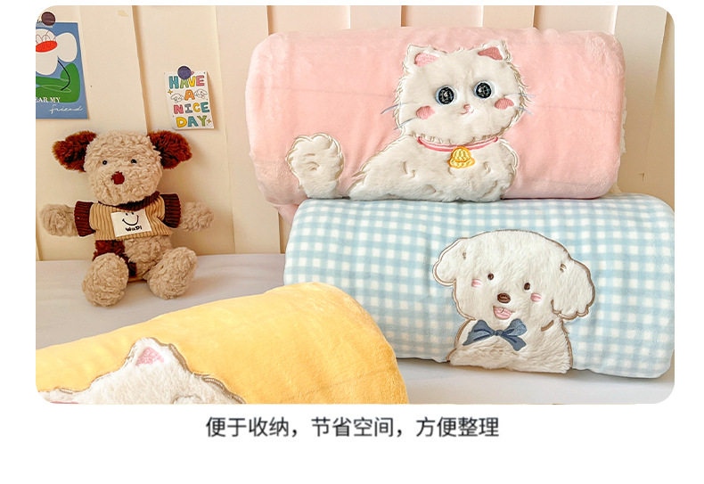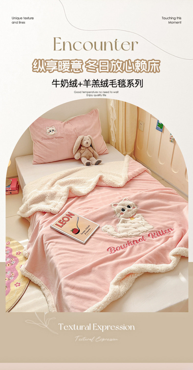 Category a Ins Cartoon Patch Embroidered Cat Milk Plush Blanket Office Sofa Cashmere Kidsren's Air Conditioning Blanket