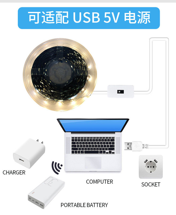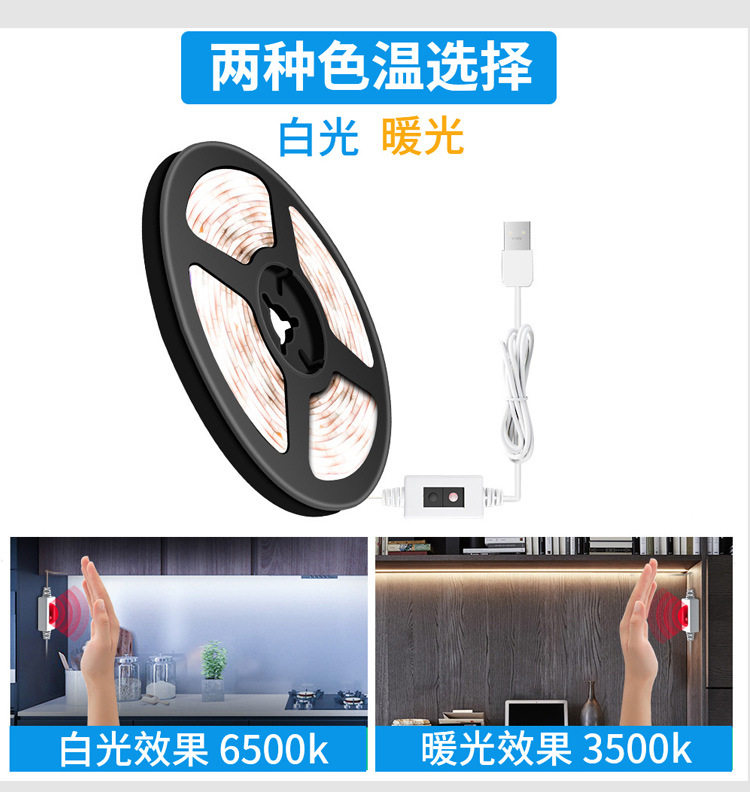 Led Light Strip USB Hand Scan Sensor Cabinet Light Lighting Wine Cabinet Fill Light Self-Adhesive 5V 2835 Smart Soft Light Strip