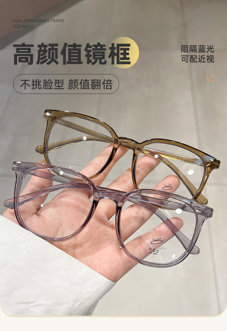 Trendy Xiaohongshu Style Student Plain Glasses Frame Korean Version Cold Tea Non-Prescription Glasses for Men and Women with Options for Prescription Lenses