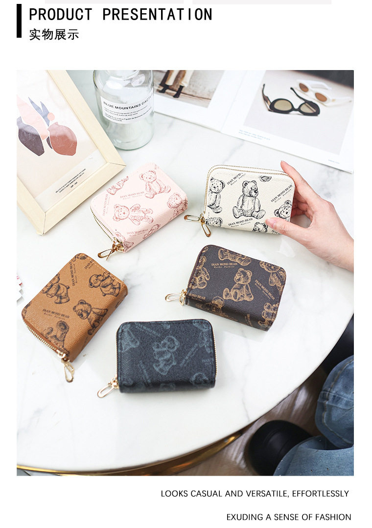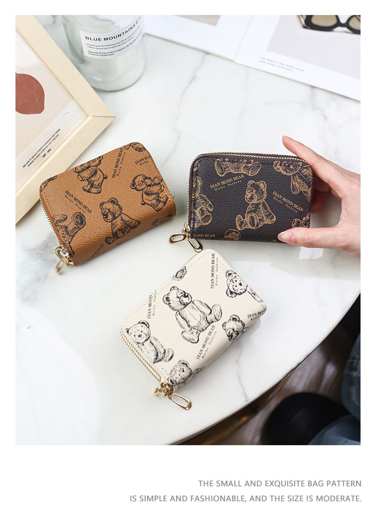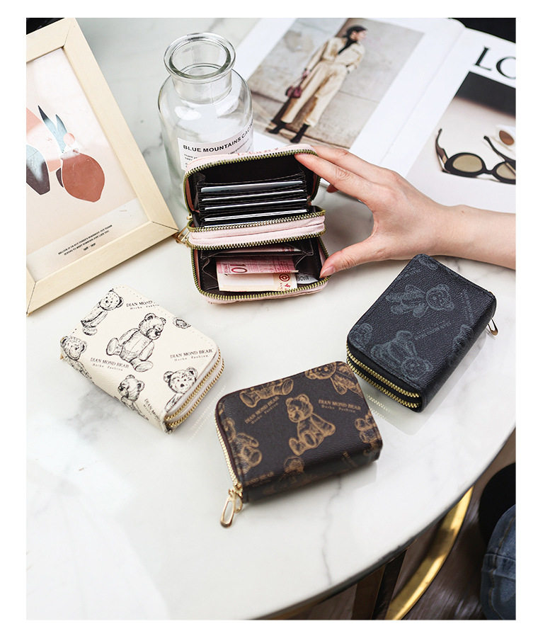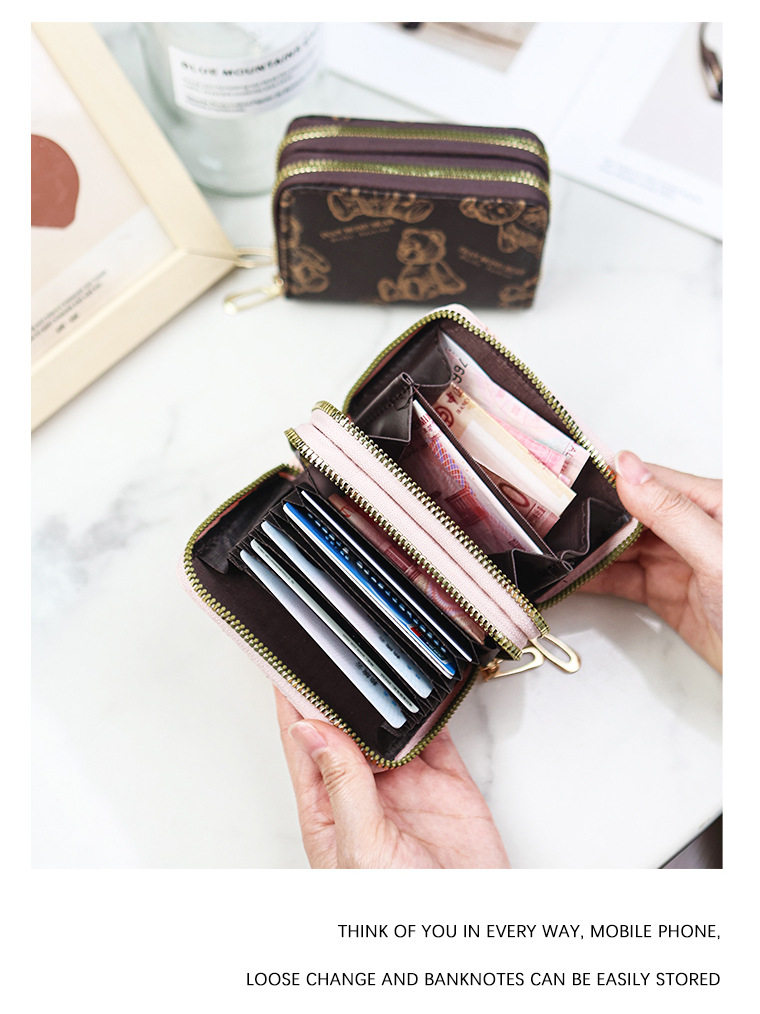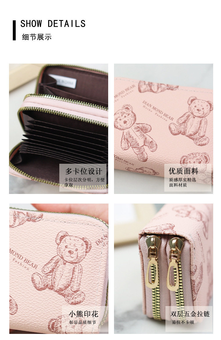 New Korean Style Bear Print Accordion Card Holder Double-Layer Zipper Multi-Functional Card Holder Simple and Fashionable Large-Capacity Wallet