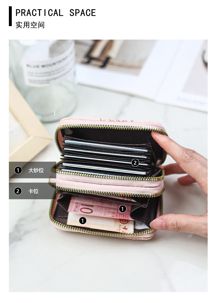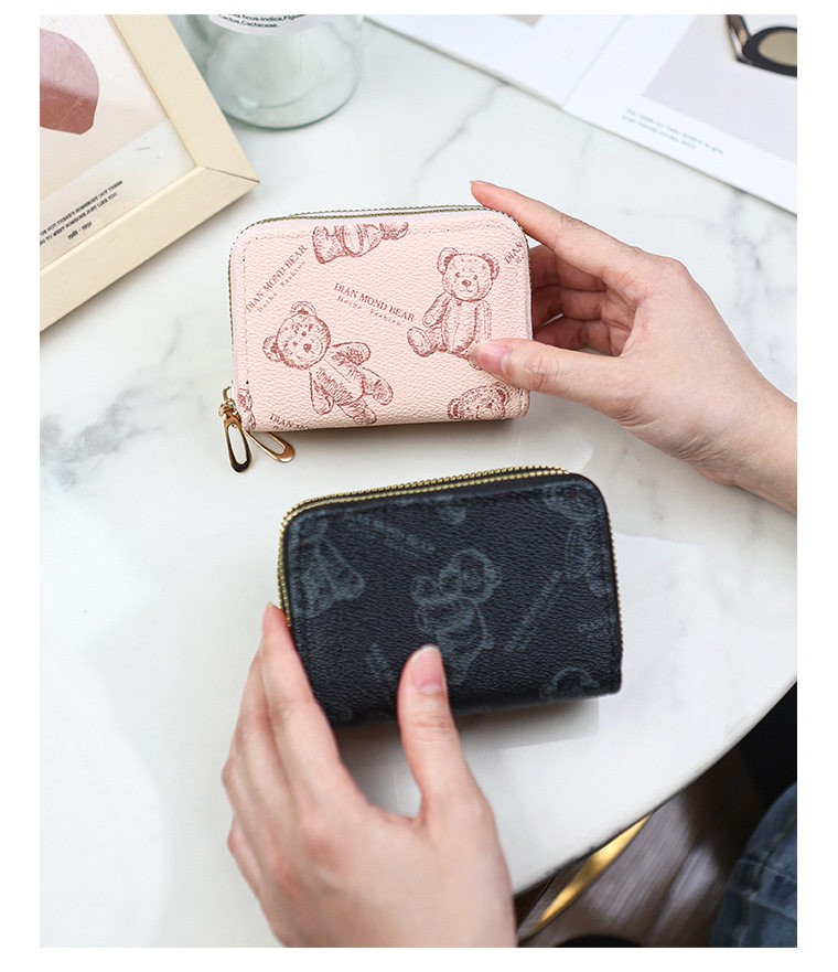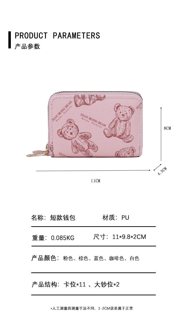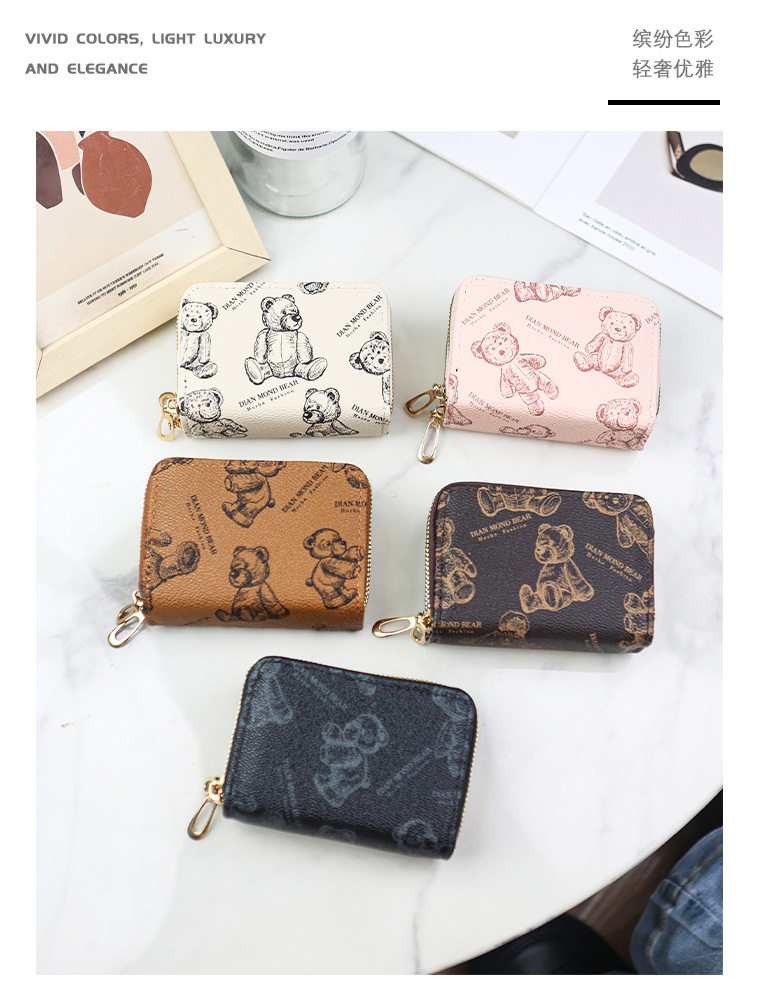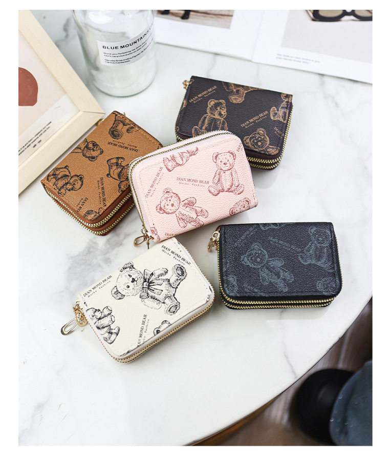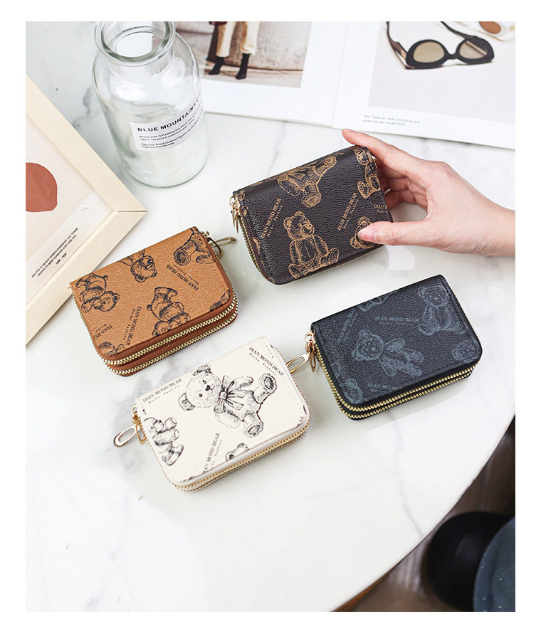New Korean Style Bear Print Accordion Card Holder Double-Layer Zipper Multi-Functional Card Holder Simple and Fashionable Large-Capacity Wallet