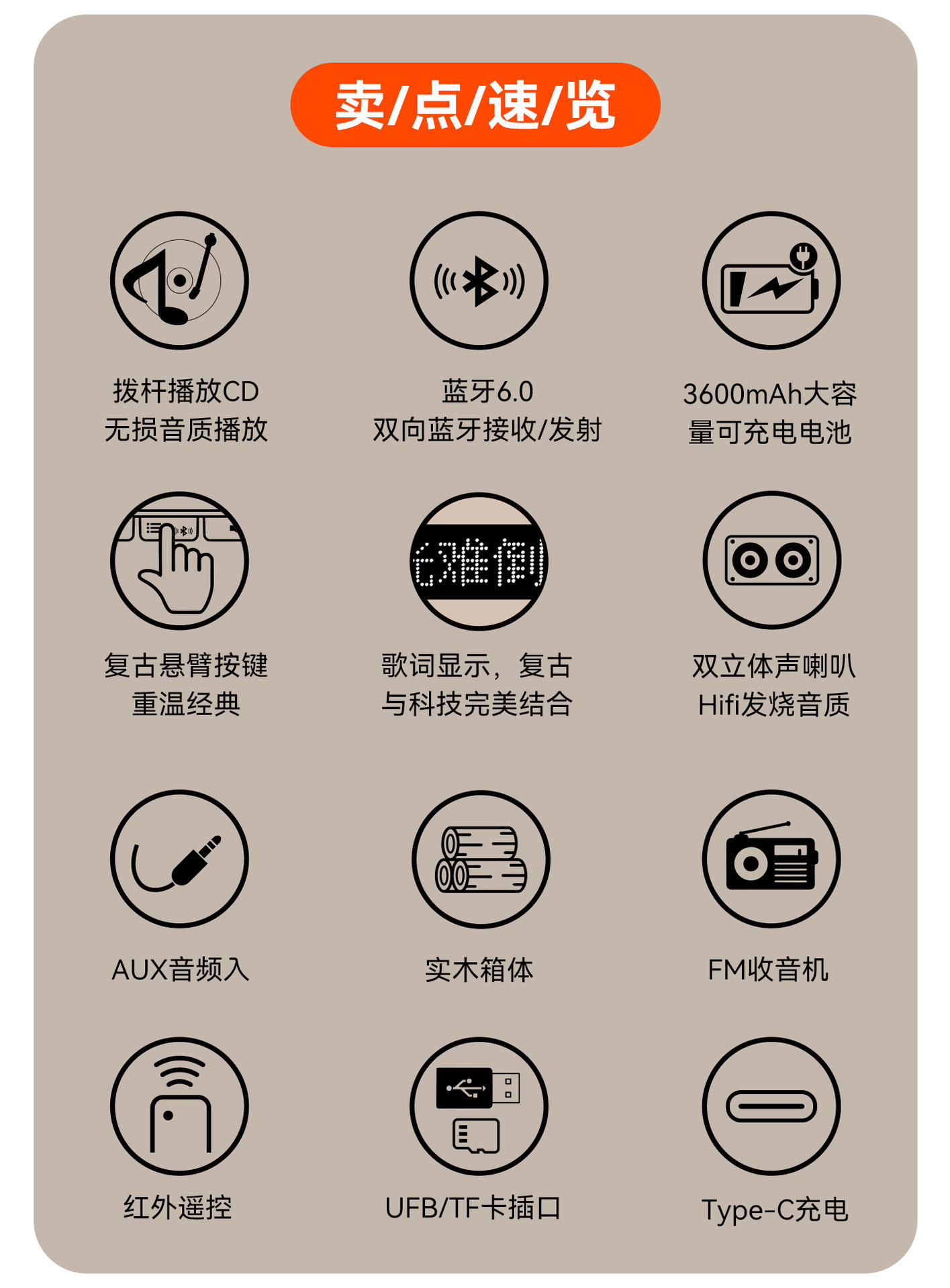 Sbollo Cd Player Music Audio Player Retro Audiophile Sound Quality Portable Rechargeable Lyrics Display