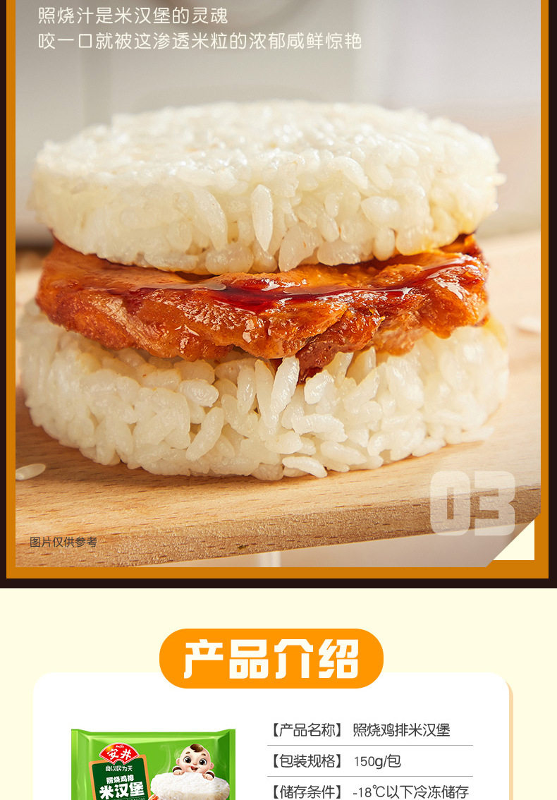 Anjing Teriyaki Chicken Burger 4.5kg Commercial Breakfast Heated Ready-To-Eat Convenient Instant Rice Ball Semi-Finished Product