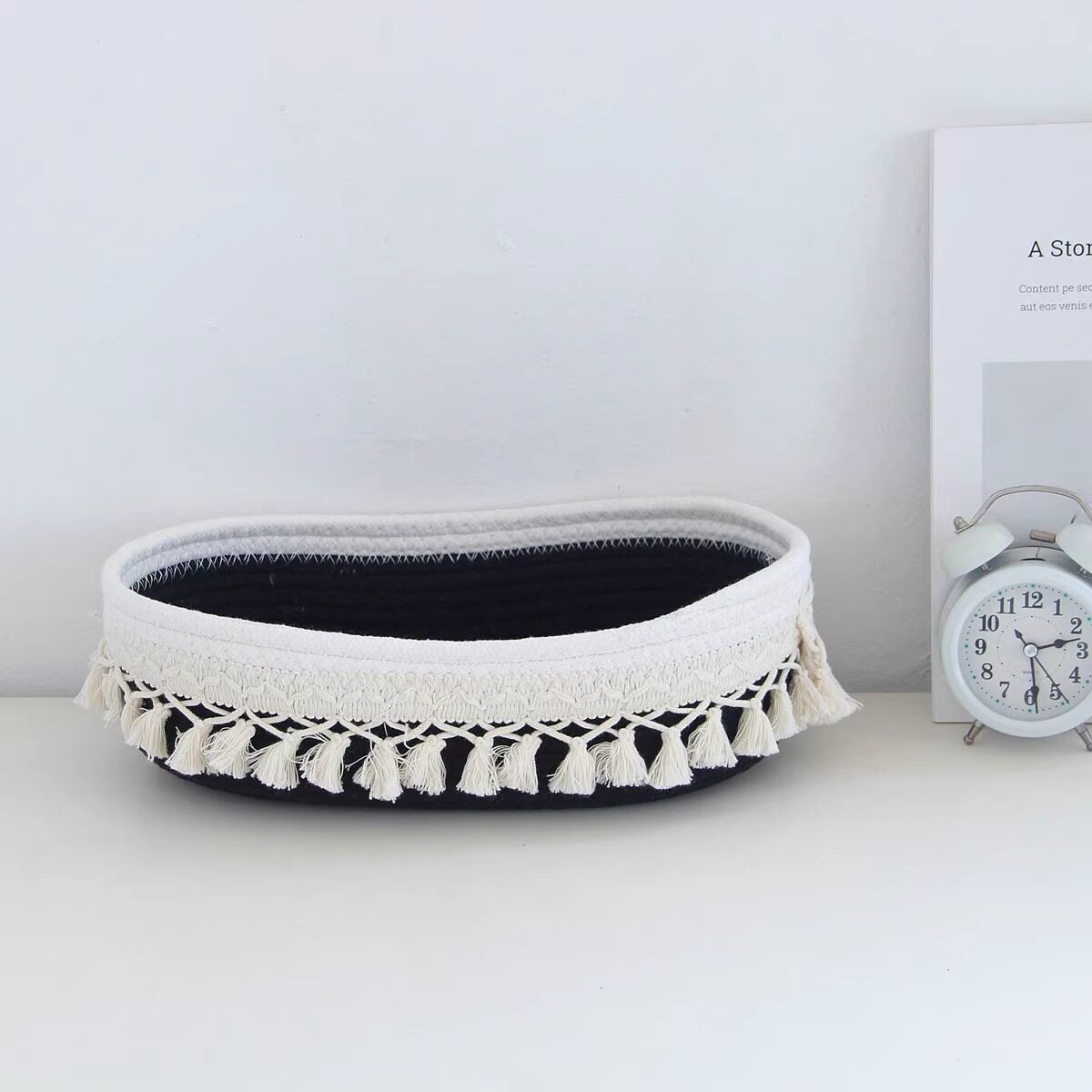 | Model | Storage box desktop sundries storage basket cosmetics snacks entrance hand-woven cotton thread storage basket boat-shaped basket |