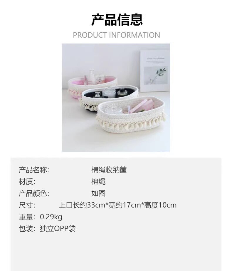 | Product code | Cotton rope woven oval storage basket home simple modern snack cosmetics desktop storage basket organizing basket |