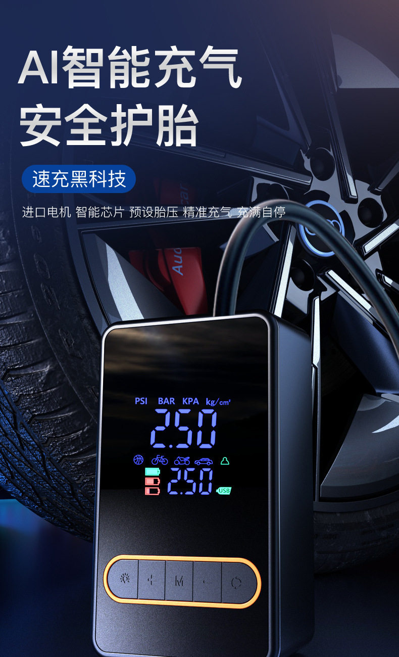 | Tire air pump | Mini portable handheld wireless charging car tire inflator pump for bicycles and electric vehicles |