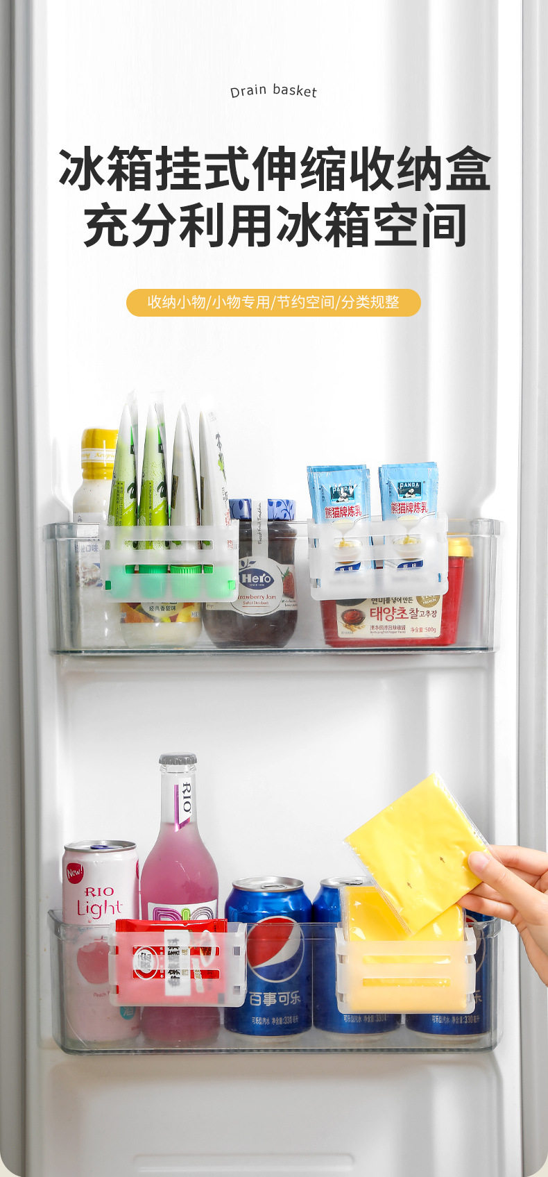 Japanese-Style Refrigerator Side Door Clip-On Retractable Storage Box Refrigerator Small Items Hanging Classification Organizer in Stock