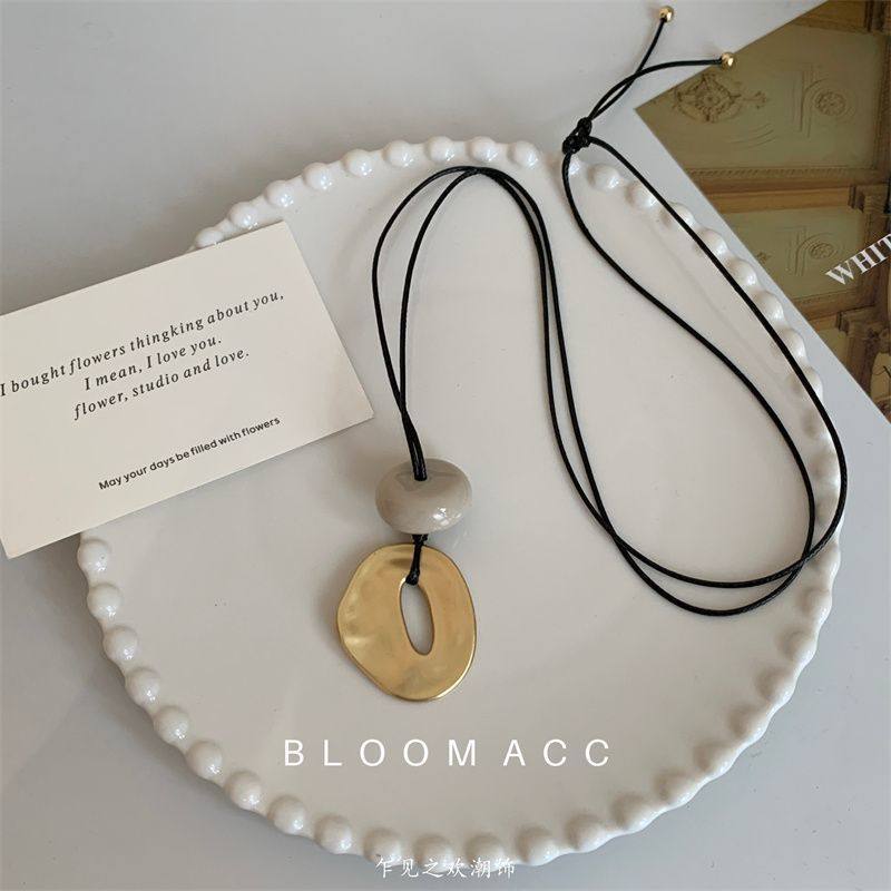 Korean Ins Simple Geometric Asymmetrical Pendant Long Necklace Women's Niche Elegant Versatile Adjustable Accessories Chain