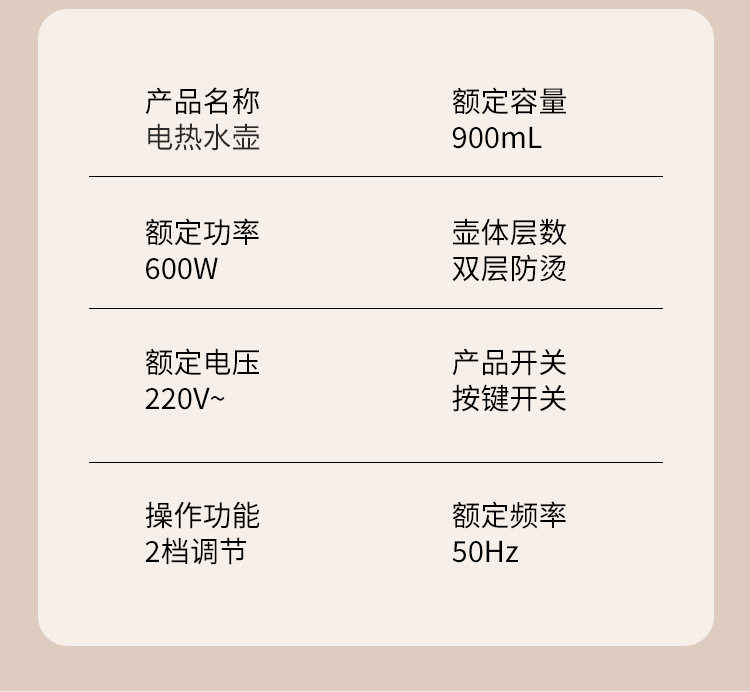 | Electric kettle capacity | 800ML |