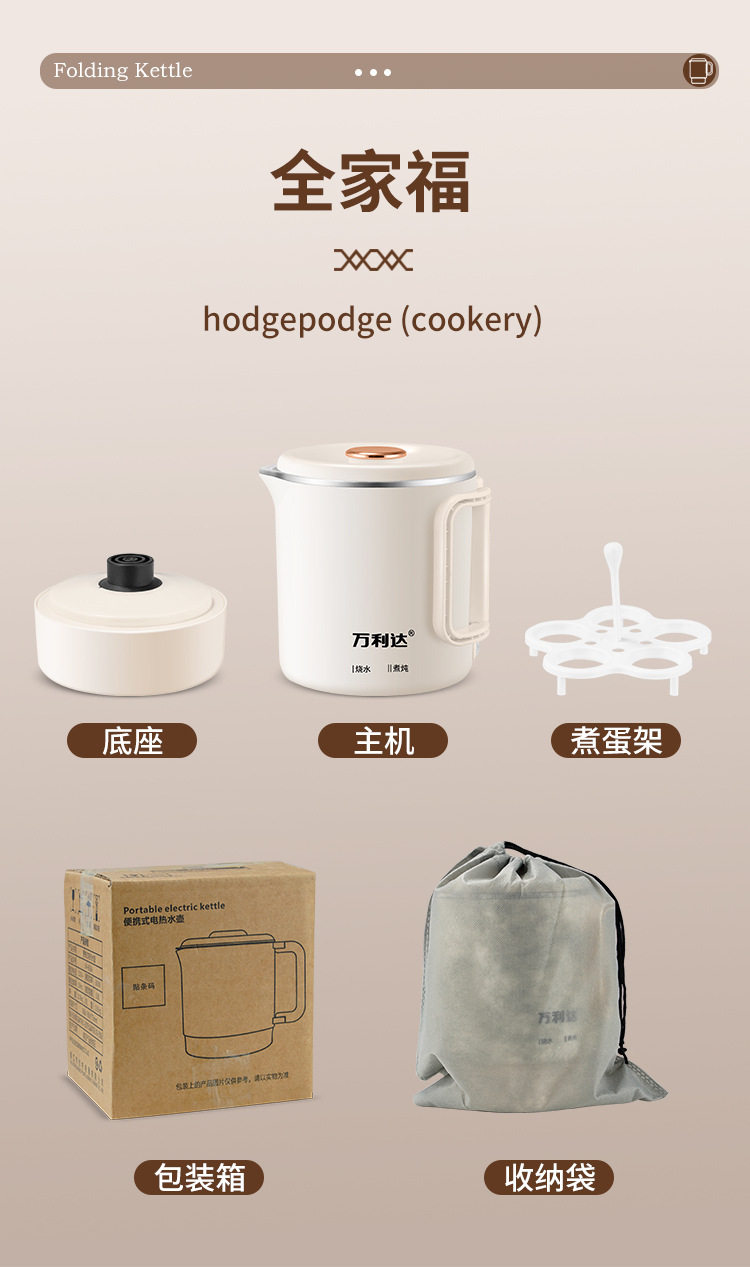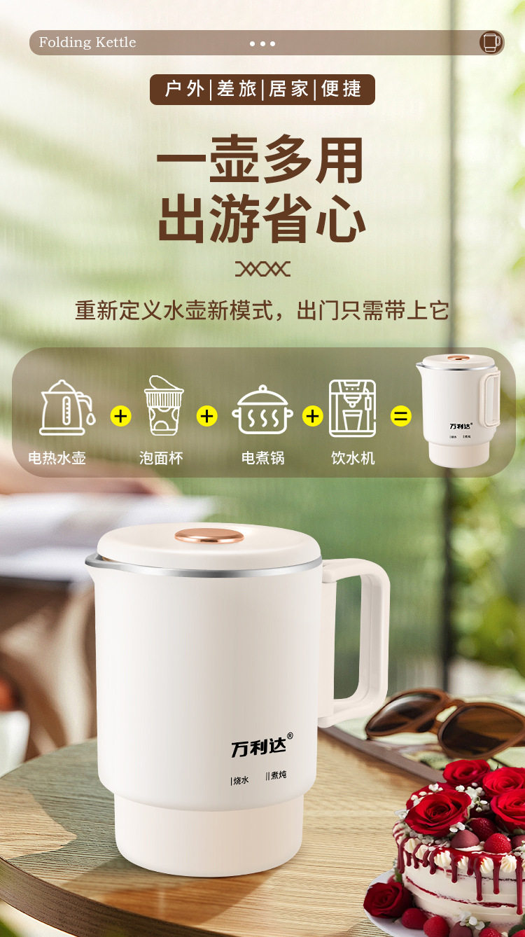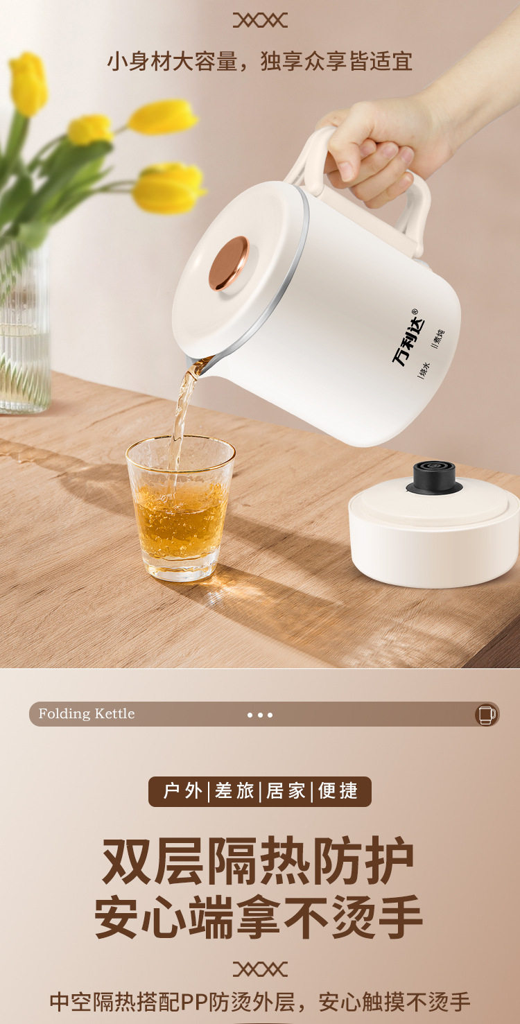 Wanlida Foldable Travel Portable Electric Kettle Small Mini Travel Compression Business Trip Insulation