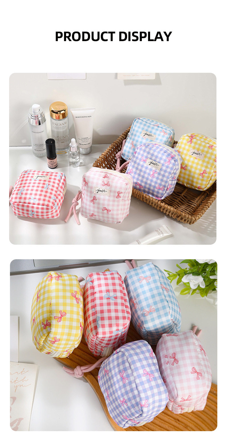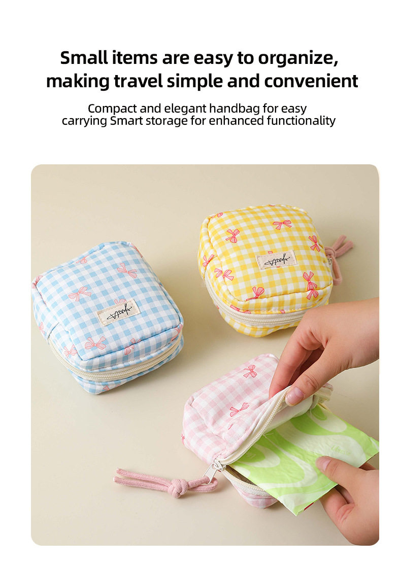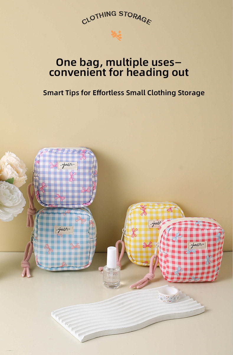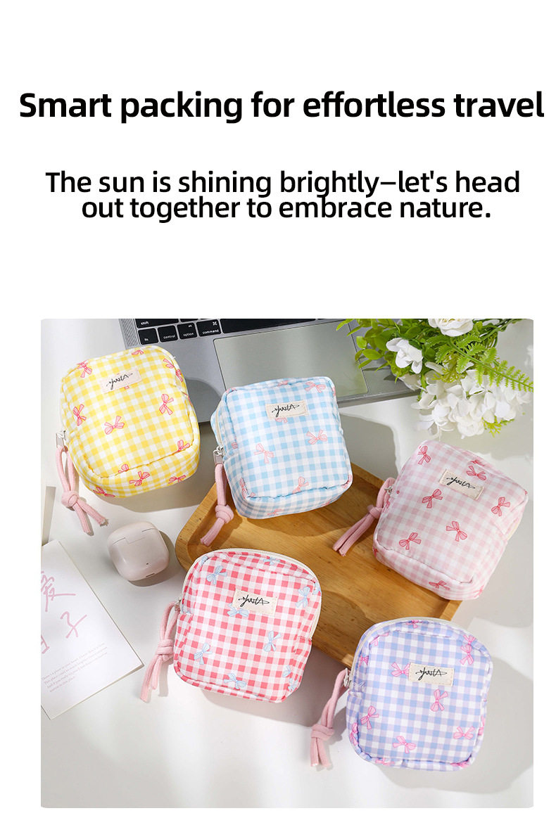 Girly Heart Square Cosmetic Storage Bag Korean Style Small Plaid Sanitary Napkin Bag Student Small Headphone Data Cable Bag