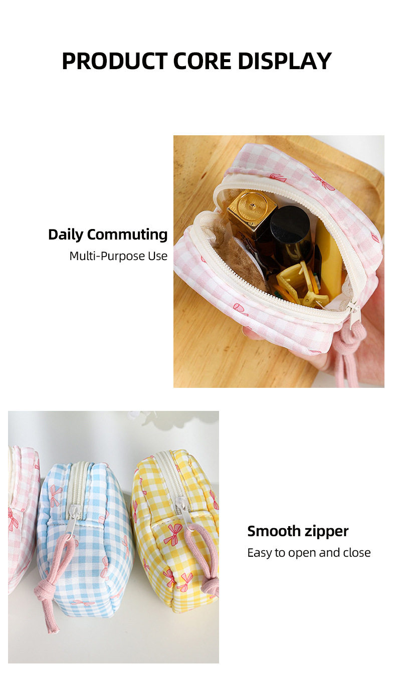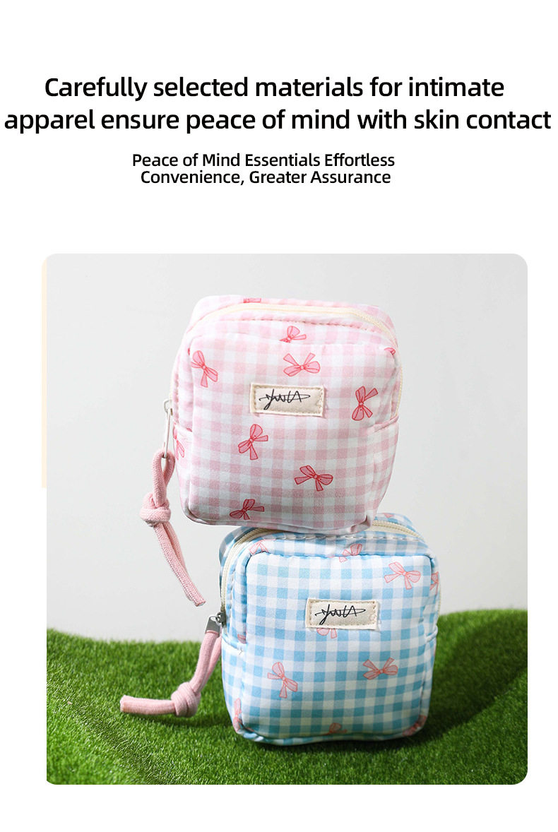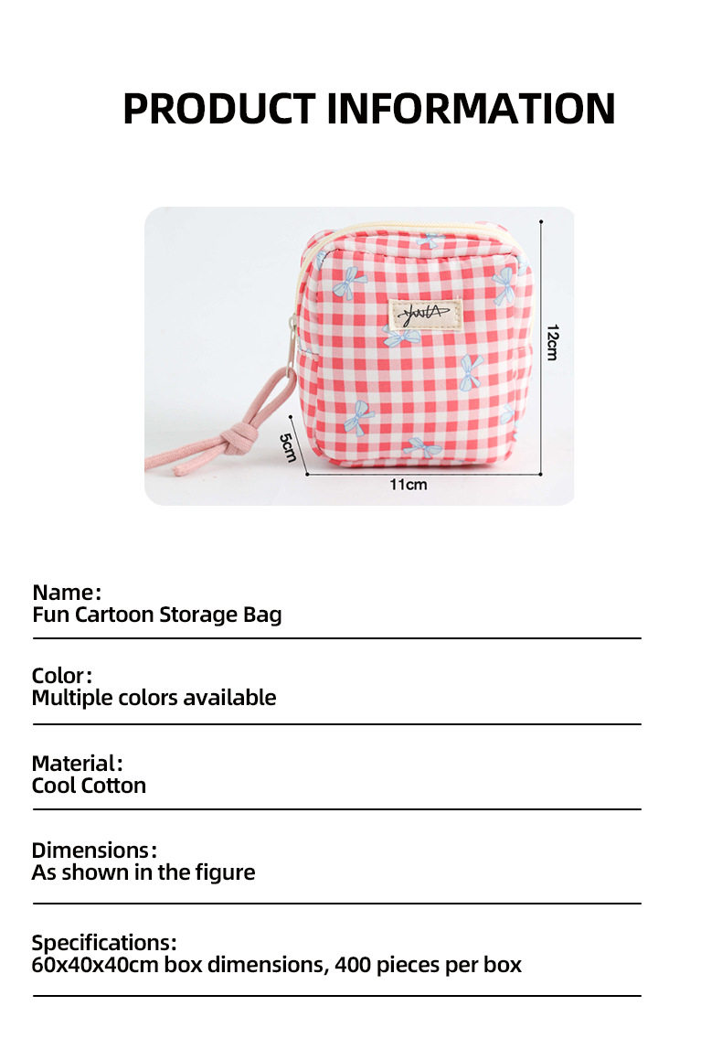Girly Heart Square Cosmetic Storage Bag Korean Style Small Plaid Sanitary Napkin Bag Student Small Headphone Data Cable Bag