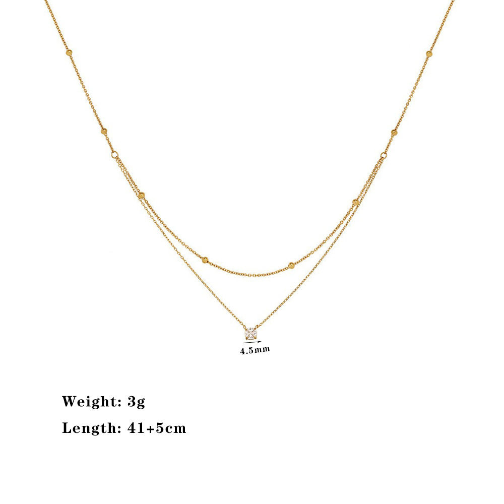 2025 New Exquisite Half-Double-Layer Single Diamond Titanium Steel Necklace, Feminine, Light Luxury, Niche Style, Layered Gold Bead Collarbone Chain