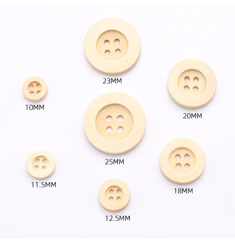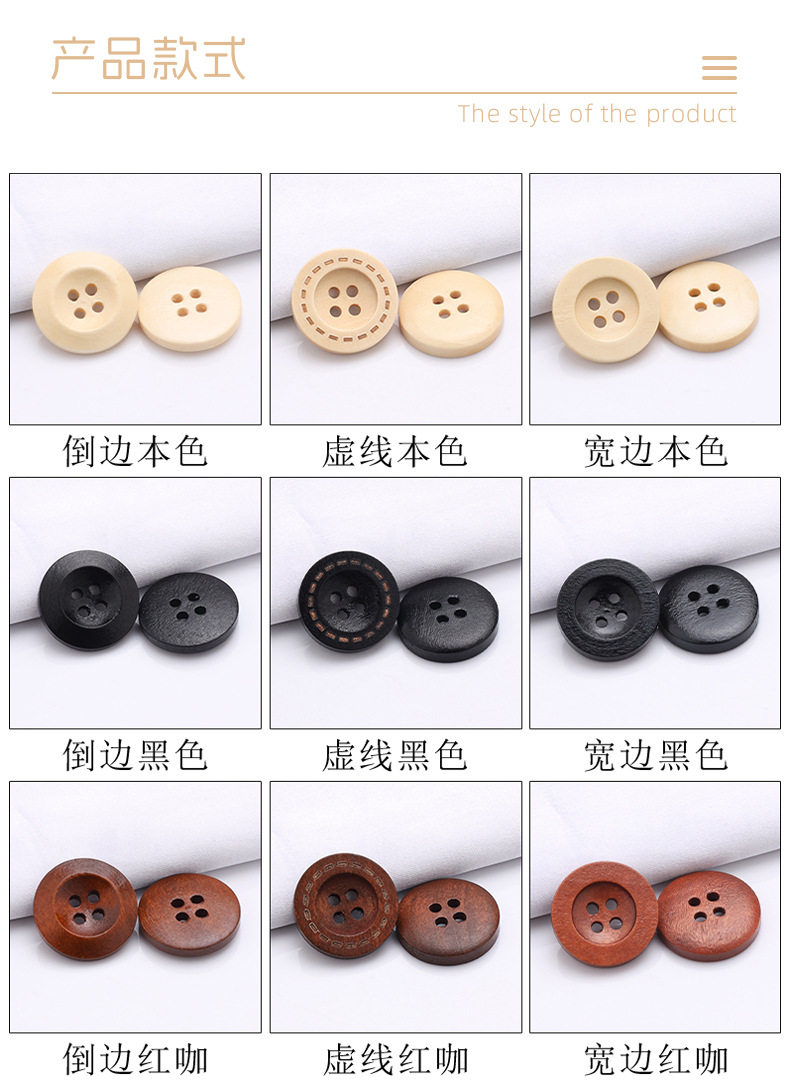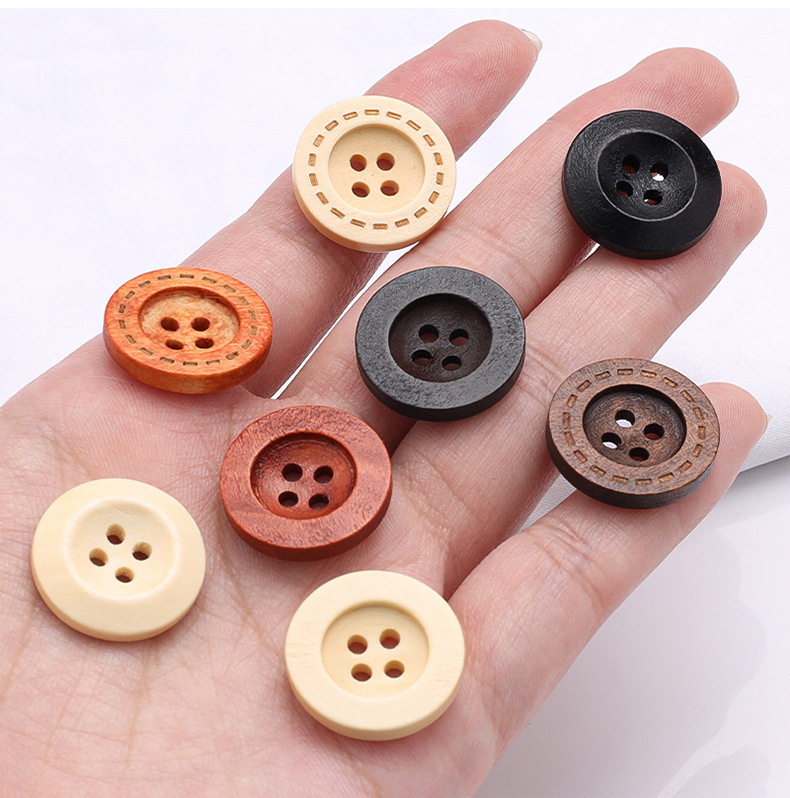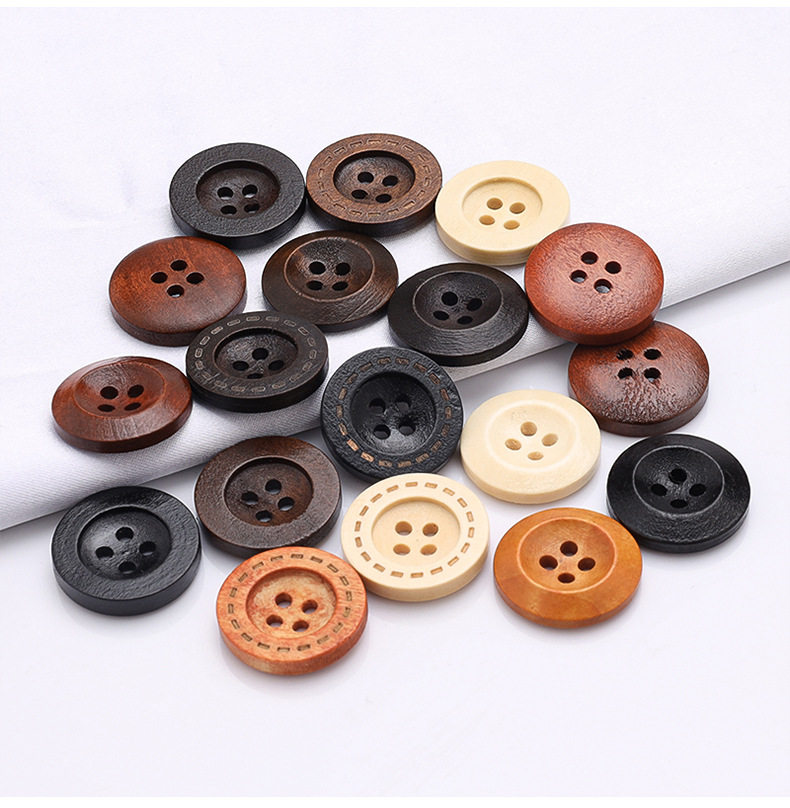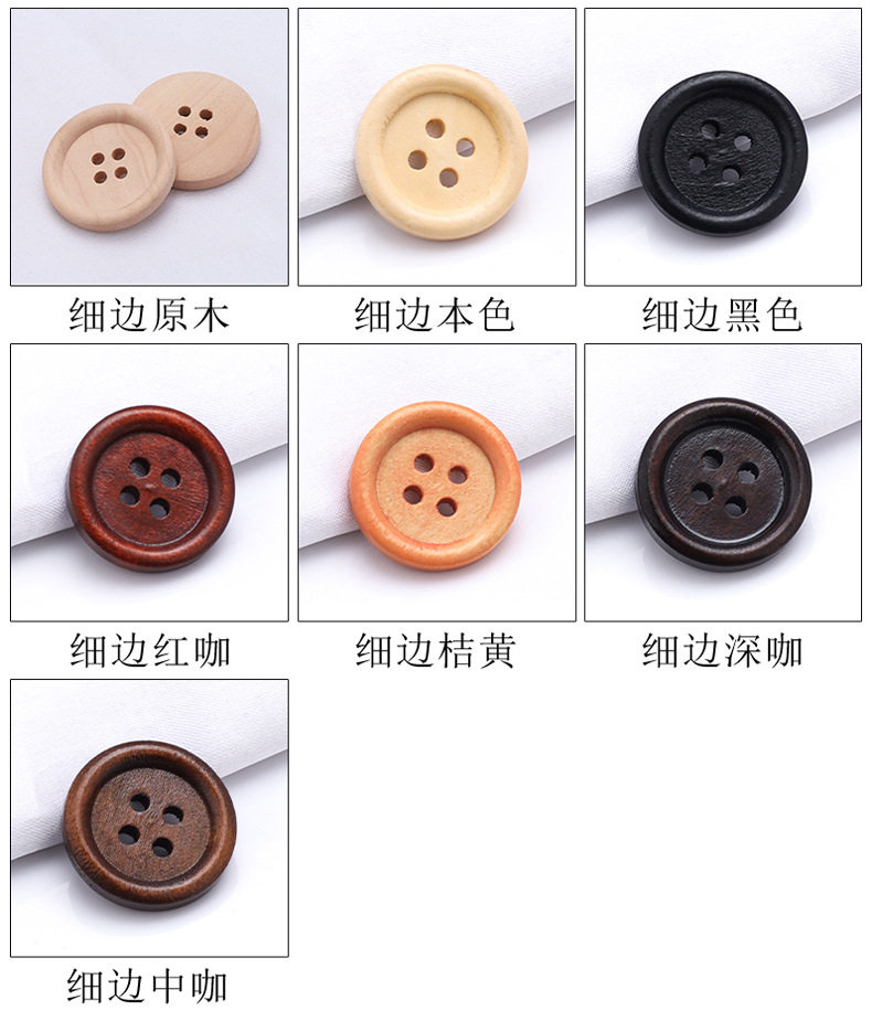 Factory Wholesale Natural Wood Buttons Wide Edge Thin Edge Round Four-Eye Wood Buttons Cardigan Jacket Round Edge Wooden Buttons