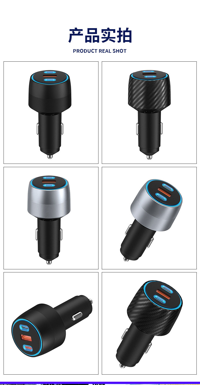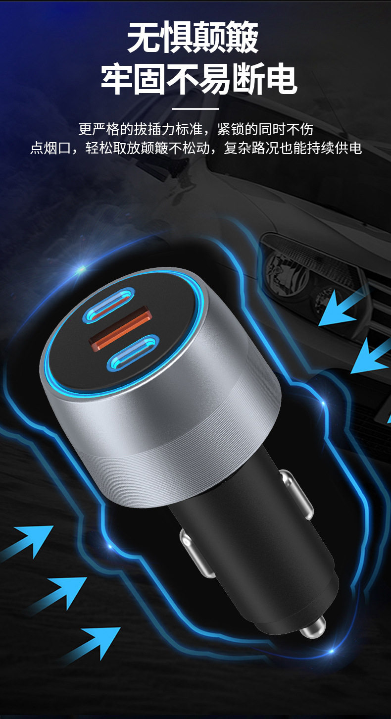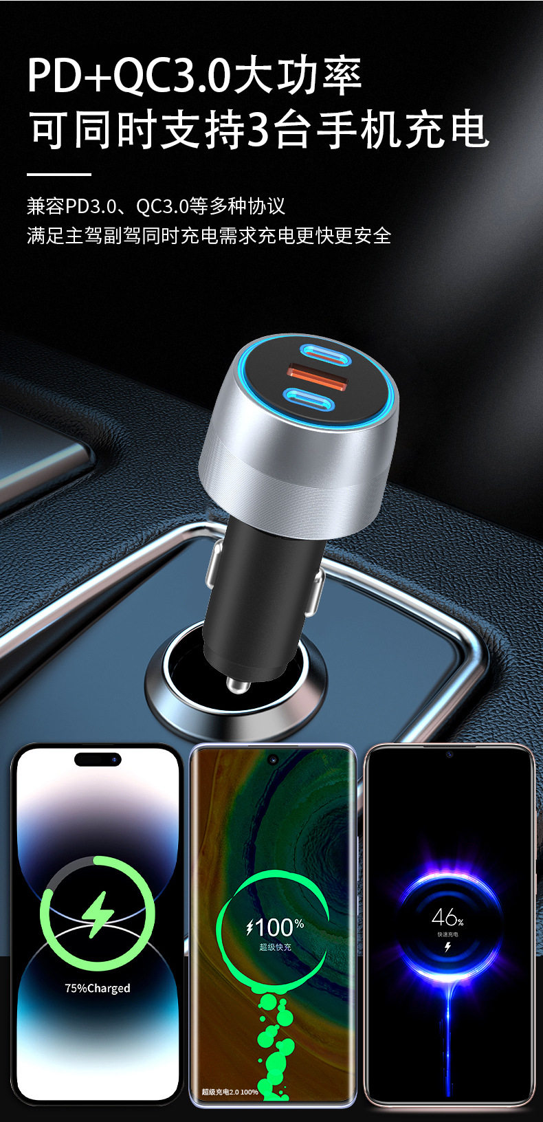 Car Charger Super Fast Charging Pd60W New Three-Port Fast Charging Pd+Qc3.0 Universal Car Charger