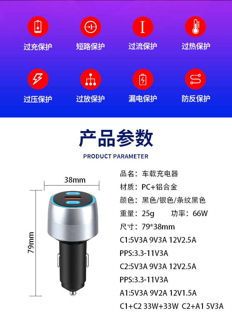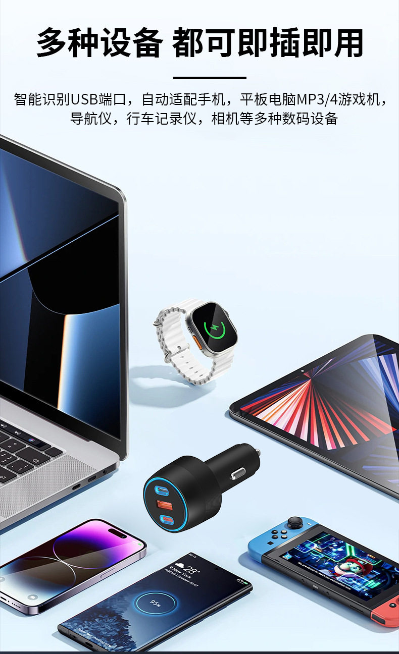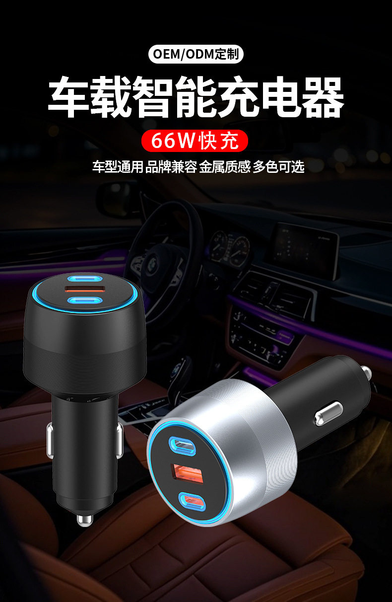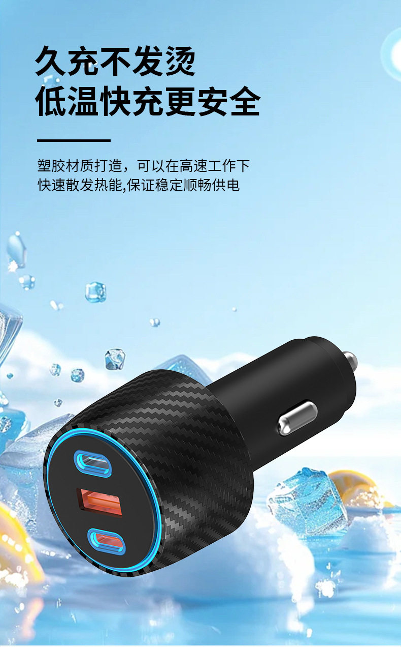 Car Charger Super Fast Charging Pd60W New Three-Port Fast Charging Pd+Qc3.0 Universal Car Charger