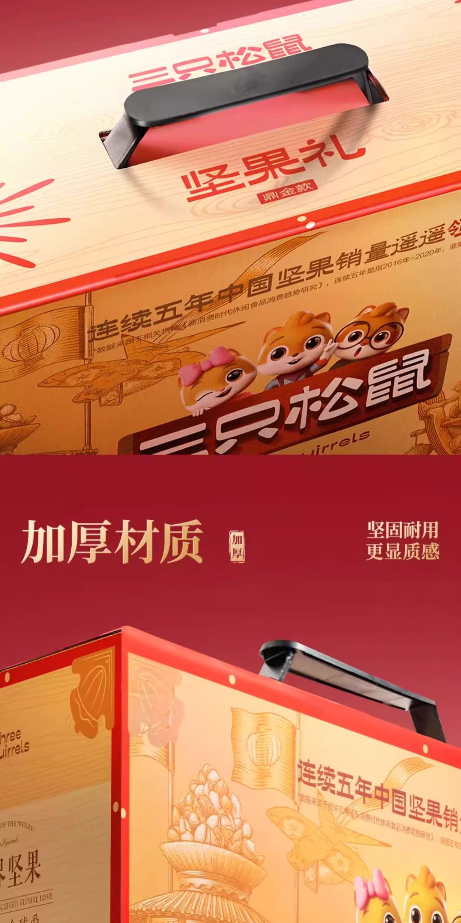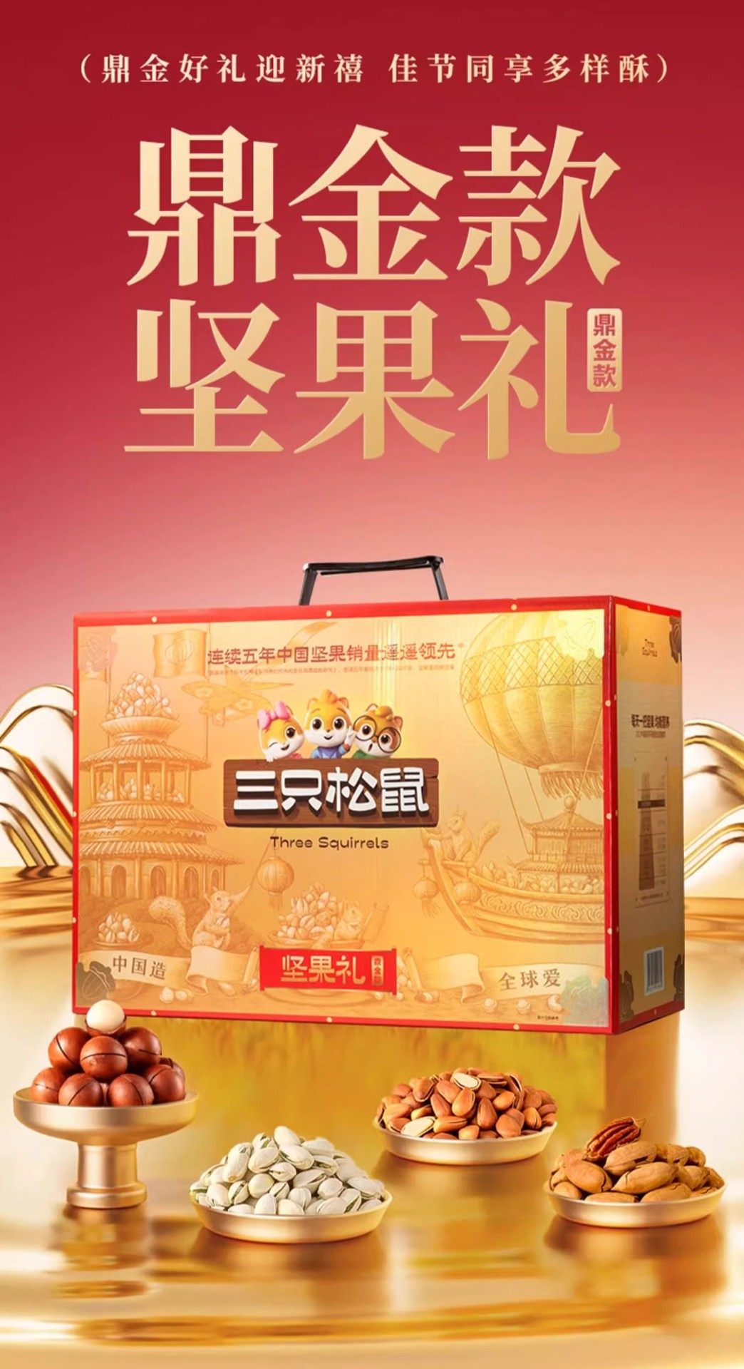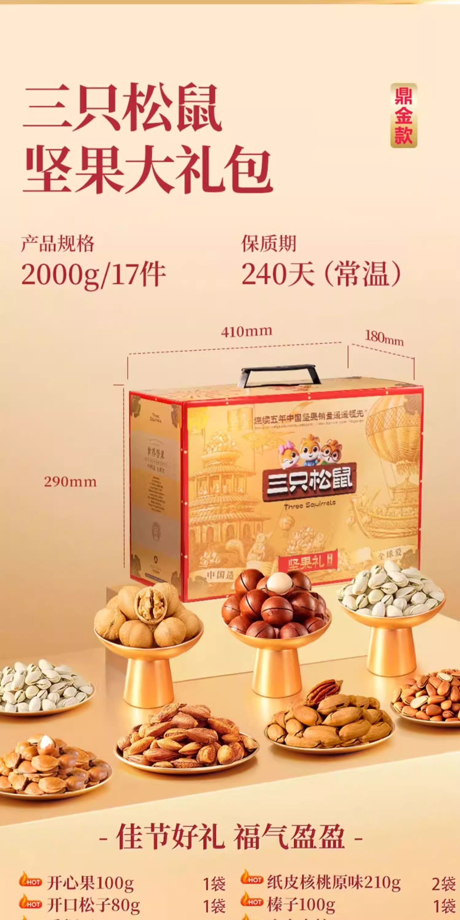 Official Three Squirrels Pure Nut Dingjin B Style Gift Box 2000g/17 Bags Snack Gift Pack Holiday Gift
