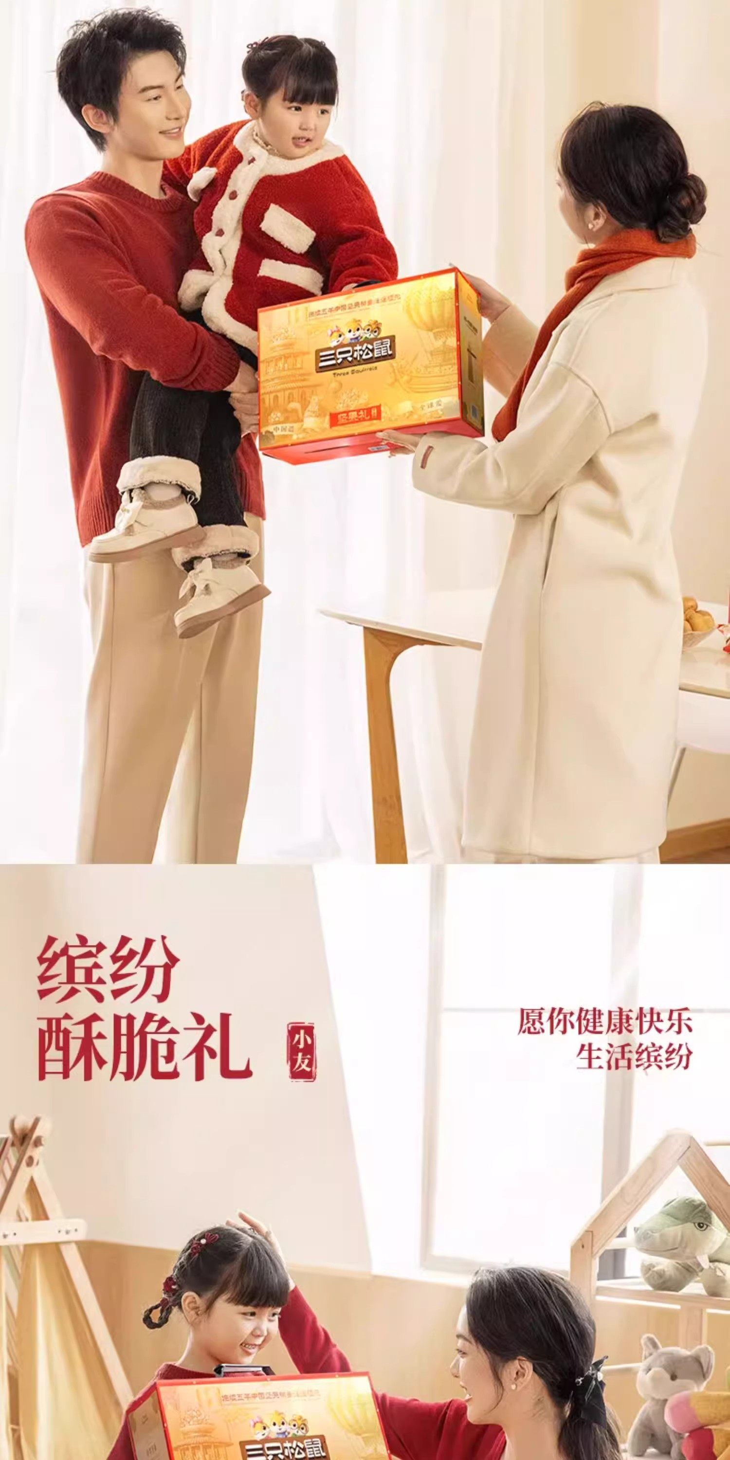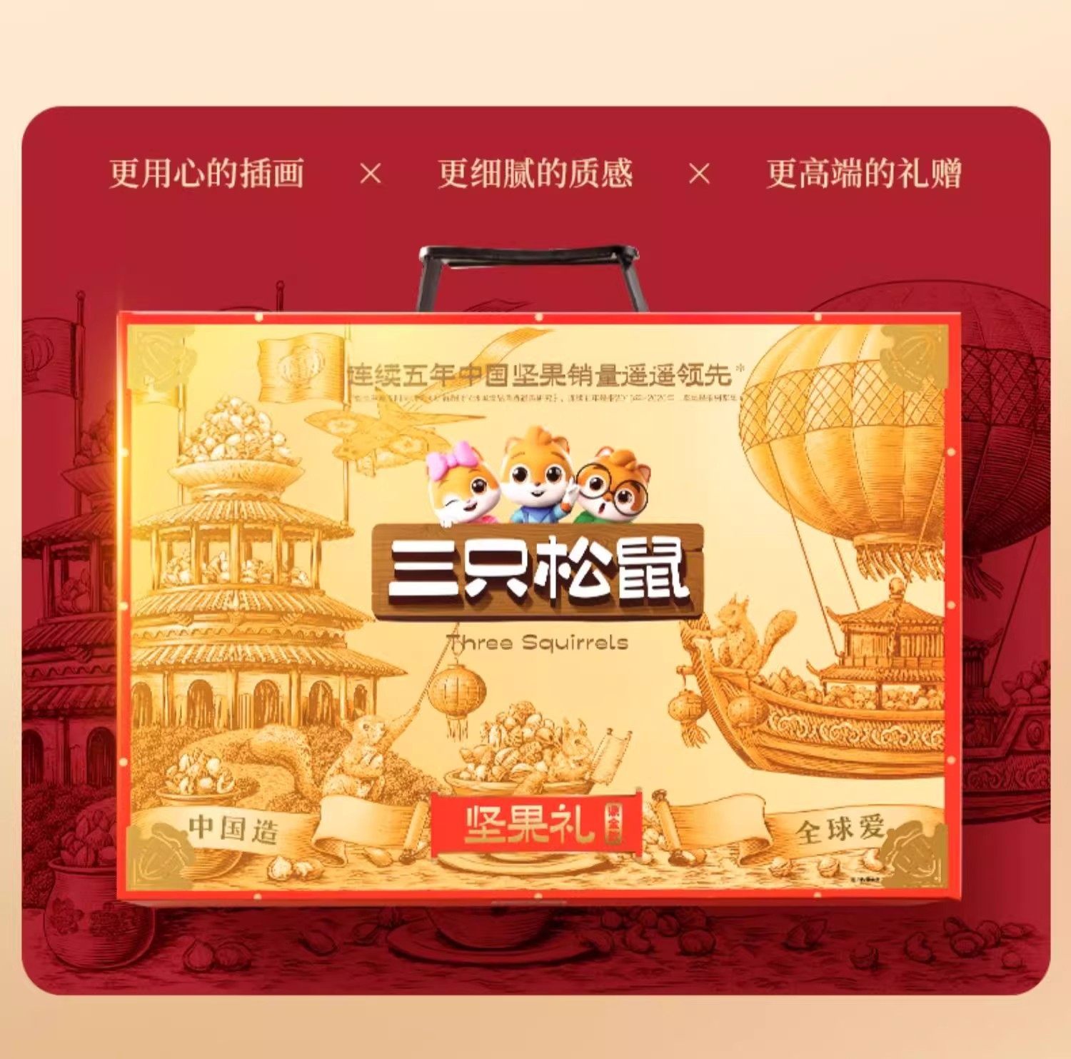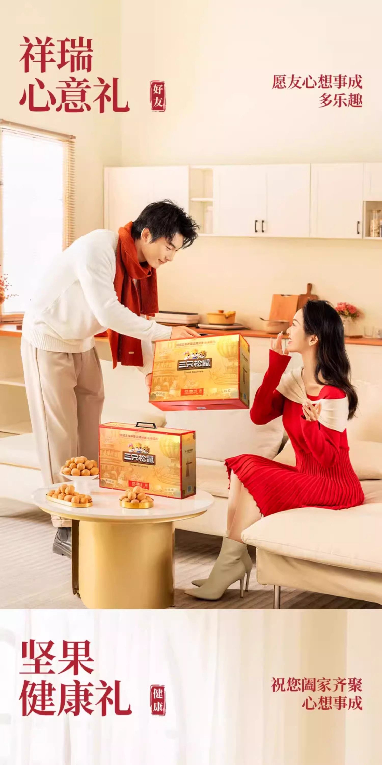 Official Three Squirrels Pure Nut Dingjin B Style Gift Box 2000g/17 Bags Snack Gift Pack Holiday Gift