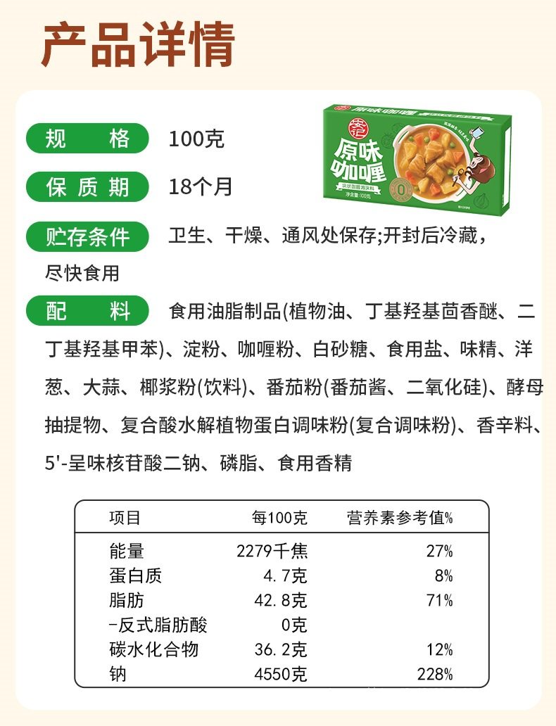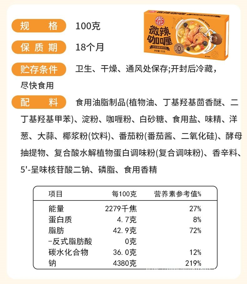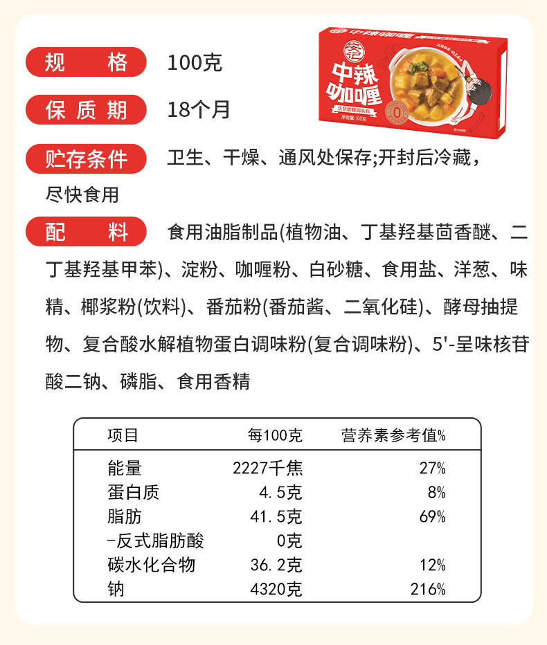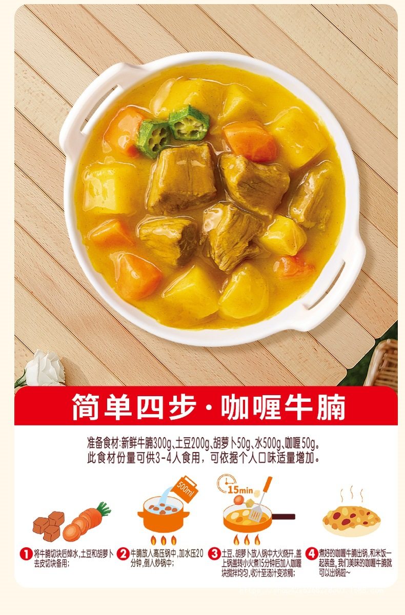 | Packaging specifications | Sharing version丨Original curry*3 boxes, best-selling and most popular,Sharing version丨Slightly spicy curry*3 boxes,Sharing version丨Medium spicy curry*3 boxes,Sharing version | original + mild spicy + medium spicy [recommended for early adopters],Sharing version | 2 boxes of original flavor + 1 box of slightly spicy flavor,Sharing version | 2 boxes of original flavor + 1 box of medium spicy flavor,Sharing version | 2 boxes of mild spicy + 1 box of original flavor,Sharing version | 2 boxes of mild spicy + 1 box of medium spicy,Sharing version | 2 boxes of medium spicy + 1 box of original flavor,Sharing version | 2 boxes of medium spicy + 1 box of slightly spicy,Chinese version | original curry*3 boxes [cost-effective choice],Chinese version丨Slightly spicy curry*3 boxes,Chinese version | medium spicy curry*3 boxes,Chinese version | original + mild spicy + medium spicy [recommended for early adopters],Chinese version | 2 boxes of original flavor + 1 box of slightly spicy flavor,Chinese version | 2 boxes of original flavor + 1 box of medium spicy flavor,Chinese version | 2 boxes of slightly spicy + 1 box of original flavor,Chinese version | 2 boxes of mild spicy + 1 box of medium spicy,Chinese version | 2 boxes of medium spicy + 1 box of original flavor,Chinese version | 2 boxes of medium spicy + 1 box of slightly spicy |