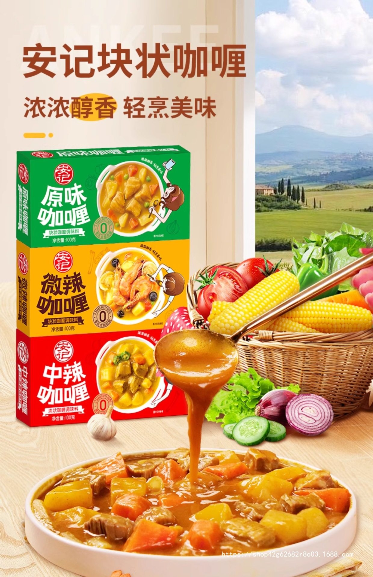 Anji Curry Household Curry Cubes 100g*3 Boxes Curry Sauce Curry Powder Kidsren's Cooking Package Official Flagship Store