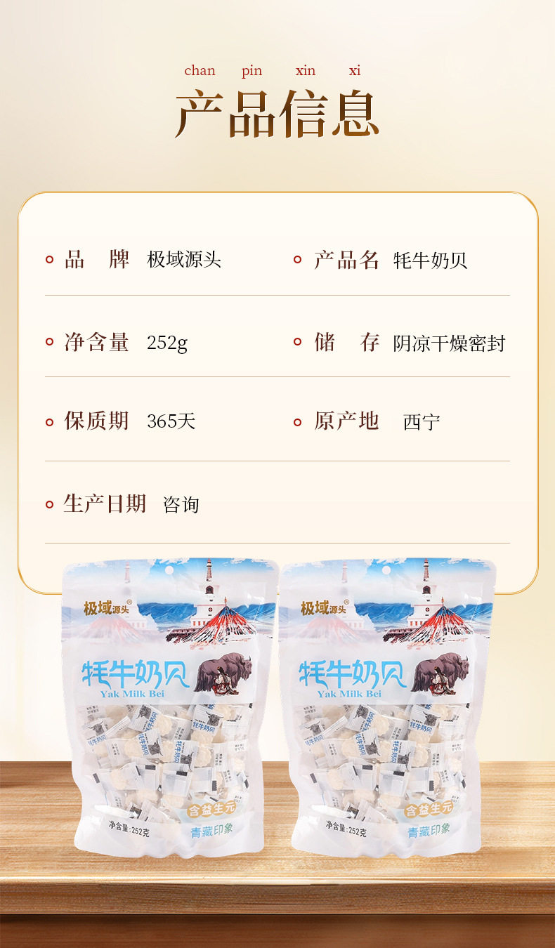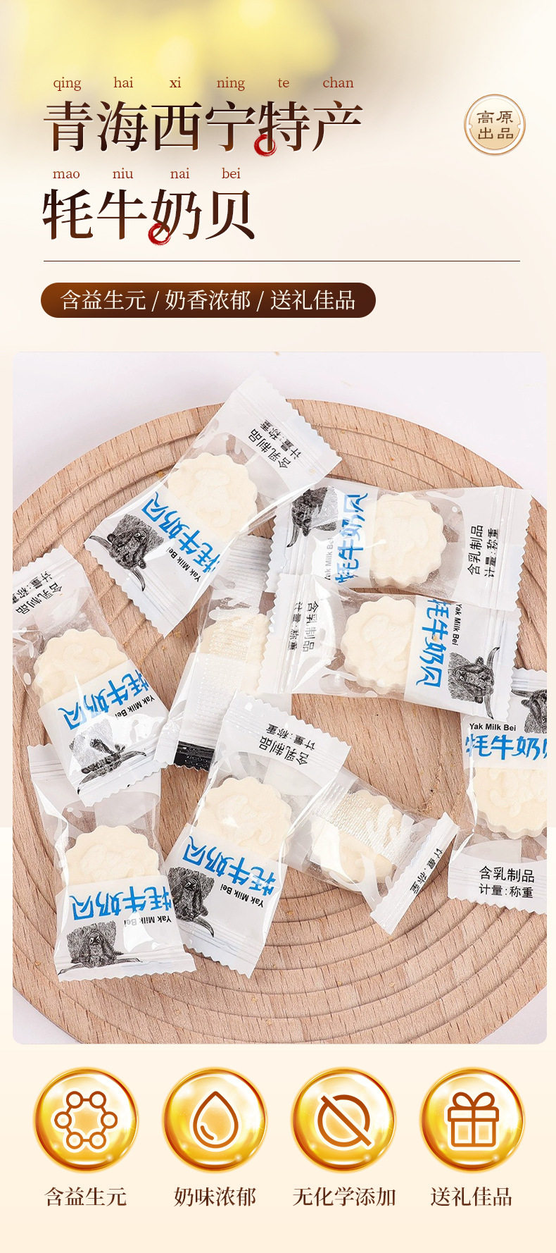 Milk Tablets and Milk Candies, a Specialty of Xining, Qinghai, Sourced from the Remote Highland Yak Milk, Containing Prebiotics, 252g Bagged