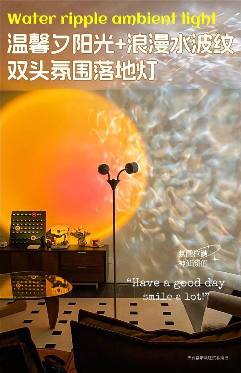 Double-Headed Water Ripple Atmosphere Lamp Living Room Floor-Standing Bedroom Internet Celebrity Sunset Live Broadcast Room Background High-End Sunset Lamp