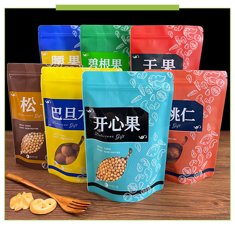Pistachio Self-Standing Packaging Bag Thickened 0.5kg Pack Transparent Window Food Ziplock Bag Pecan Dried Fruit Packaging Bag