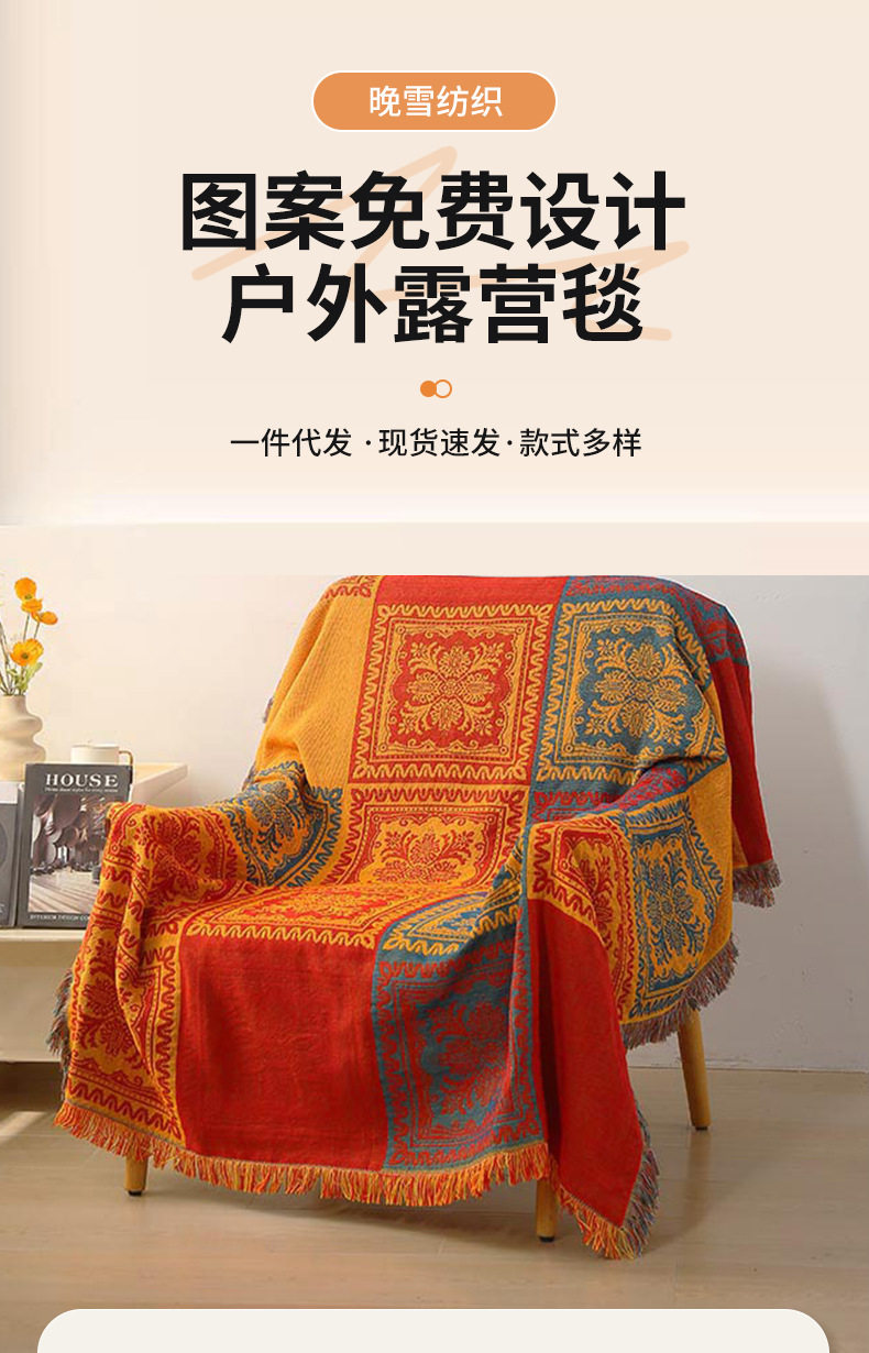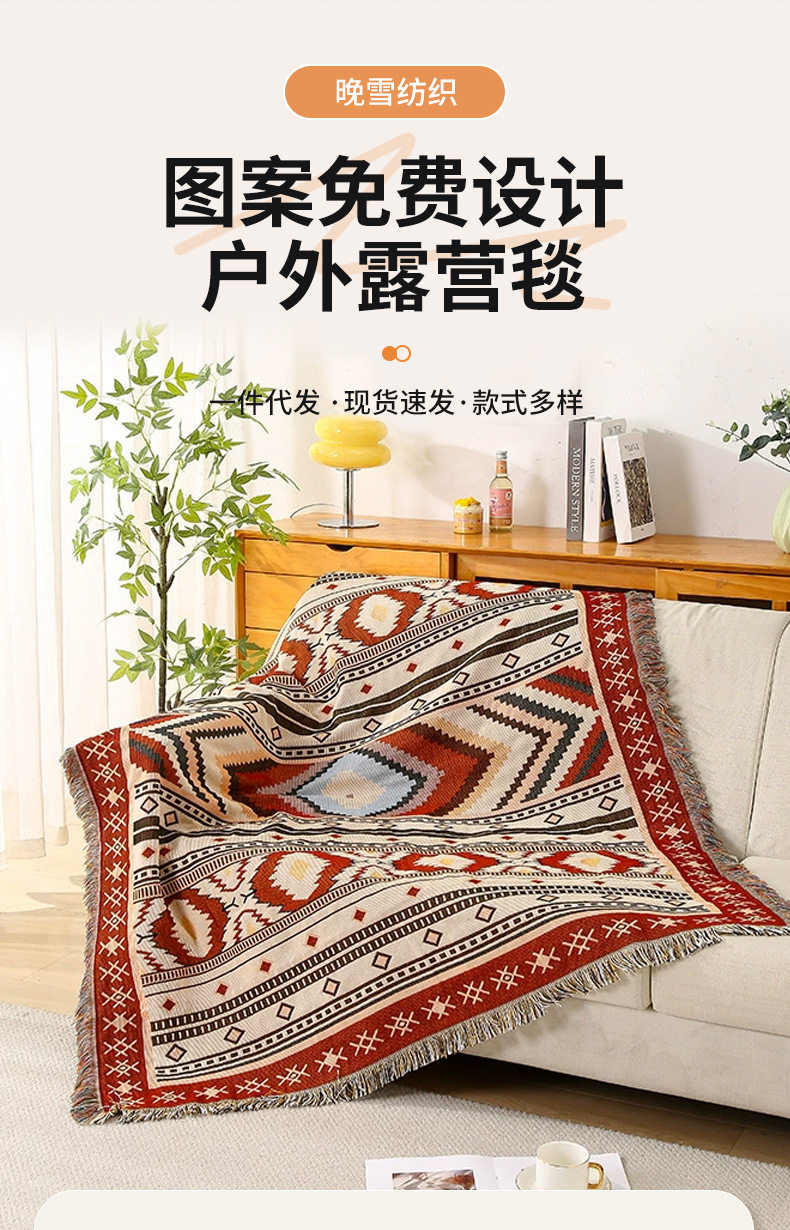 Woven Jacquard Thread Blanket Customized Multifunctional Outdoor Camping Style Picnic Blanket Living Room Bedroom Sofa Blanket Tablecloth Factory