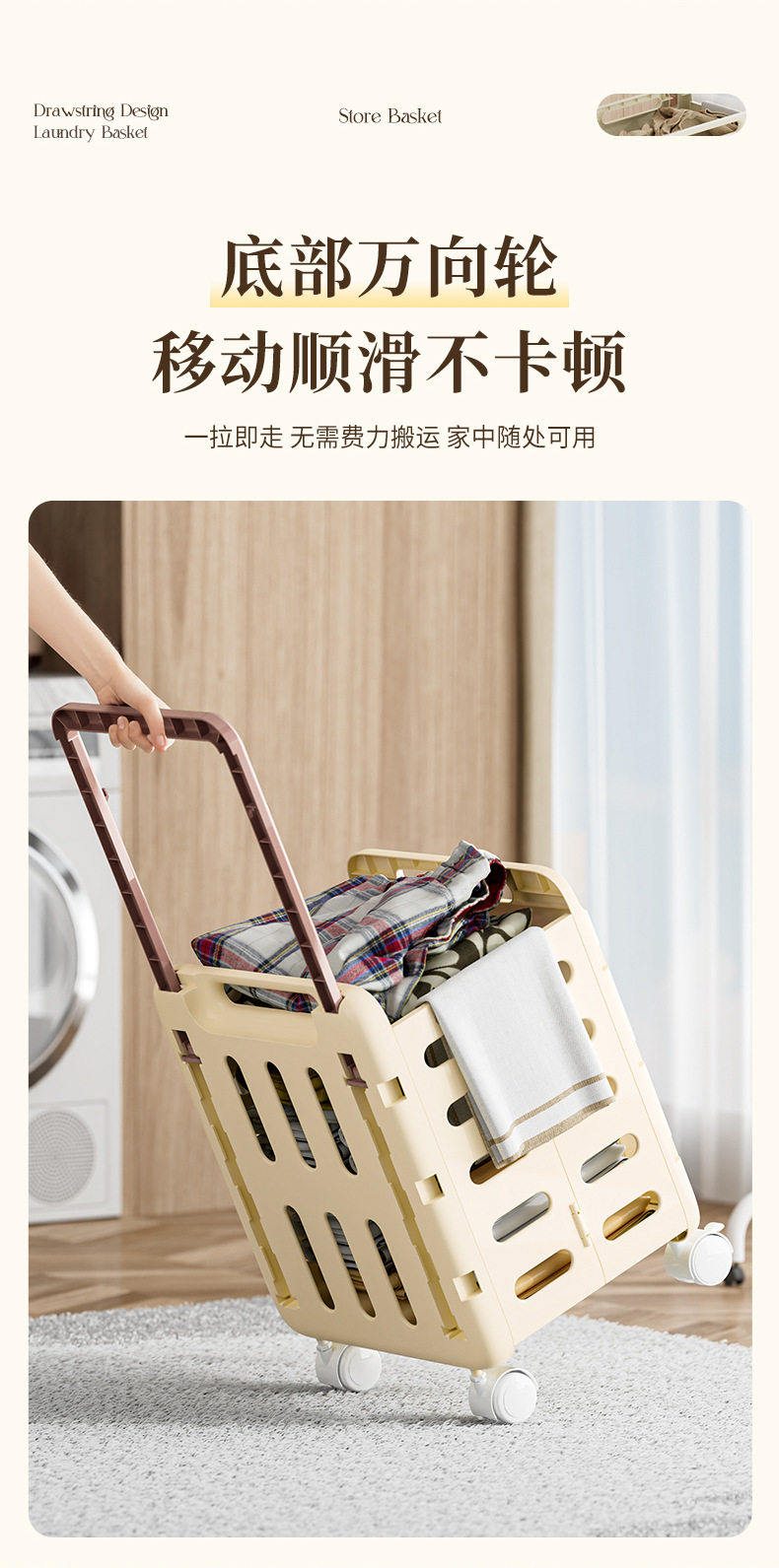 | Color | Cream white large size with pulleys/foldable,White large size with pulleys/foldable,Cream white small foldable laundry basket without wheels,White small foldable dirty clothes basket without wheels,Cream white double layer foldable dirty clothes basket with wheels,White double-layered foldable laundry basket with wheels,Cream white pull rod type folding dirty clothes basket with wheels,White trolley type folding dirty clothes basket with wheels |