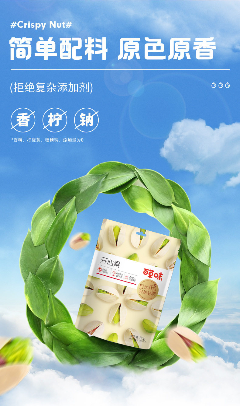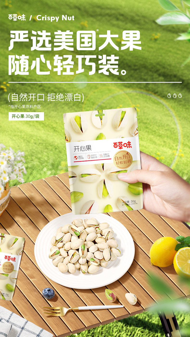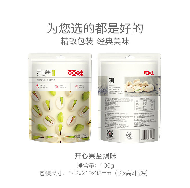 Baicaowei Pistachios 100G/30G Nuts and Dried Fruits Internet-Famous Snacks Natural Color No Bleaching Bagged Salted Roasted