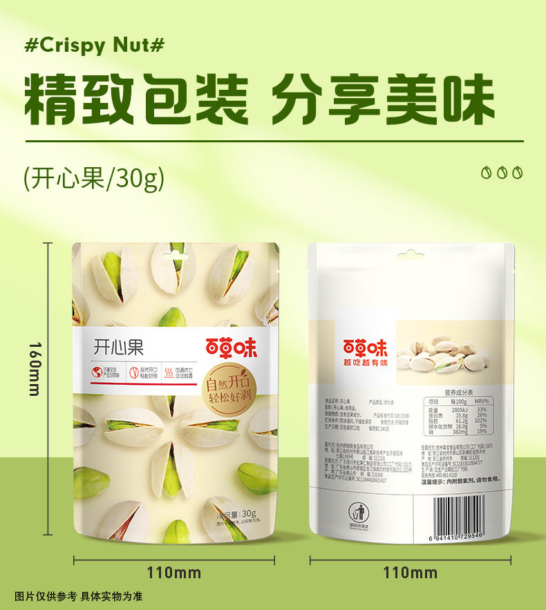 Packaging specifications Pistachios 30g (bag),Pistachios (salted) 100g