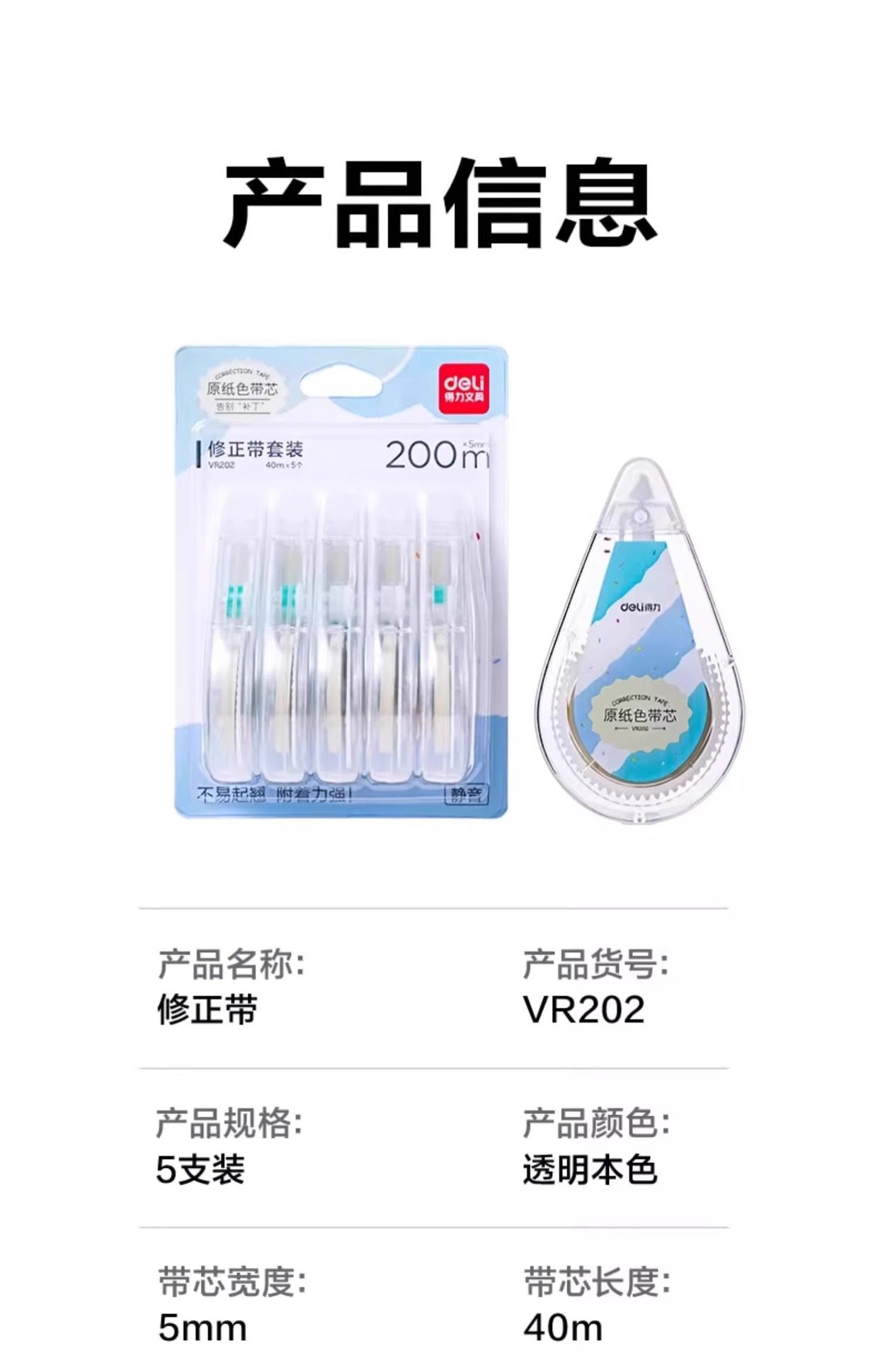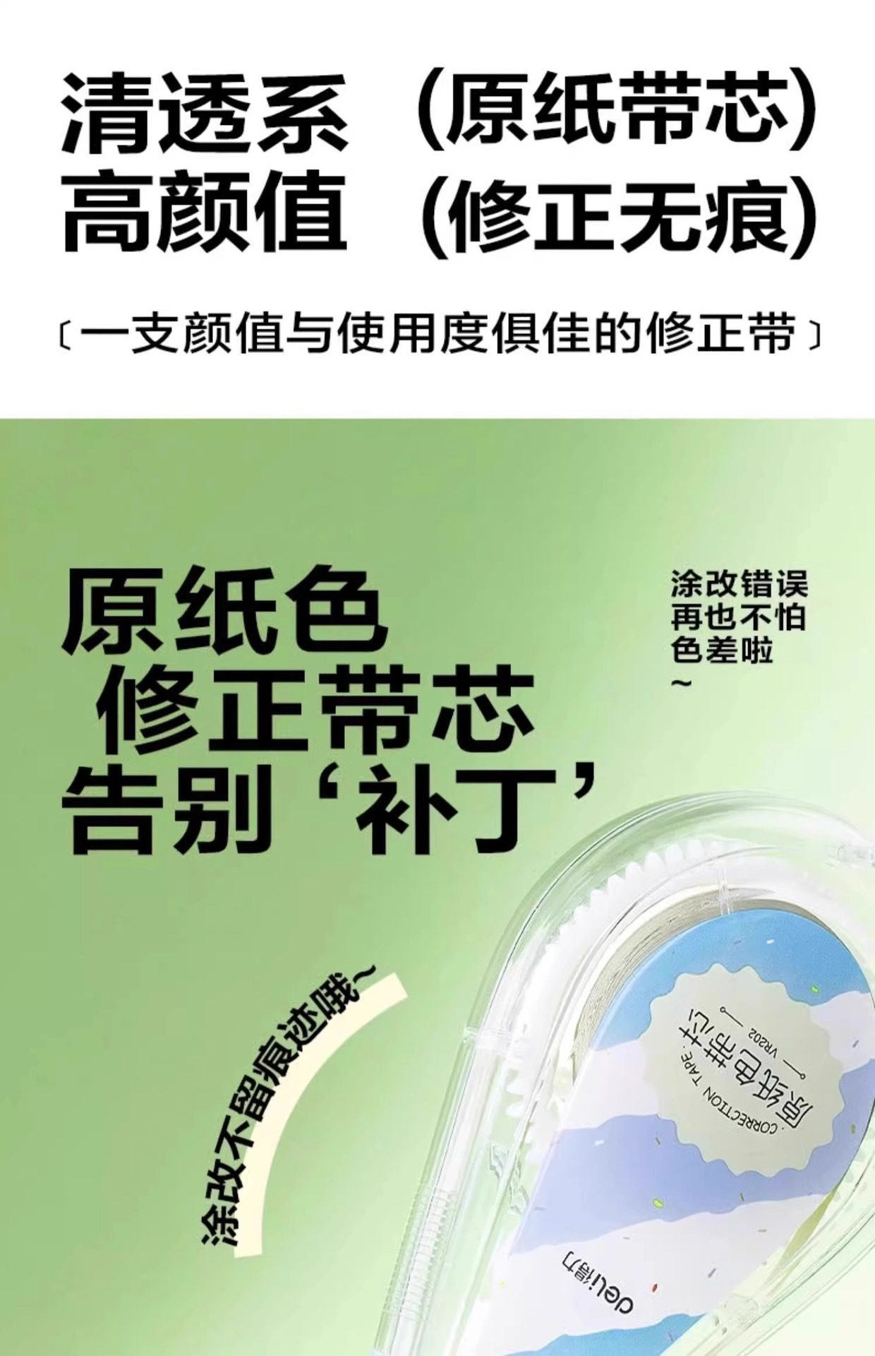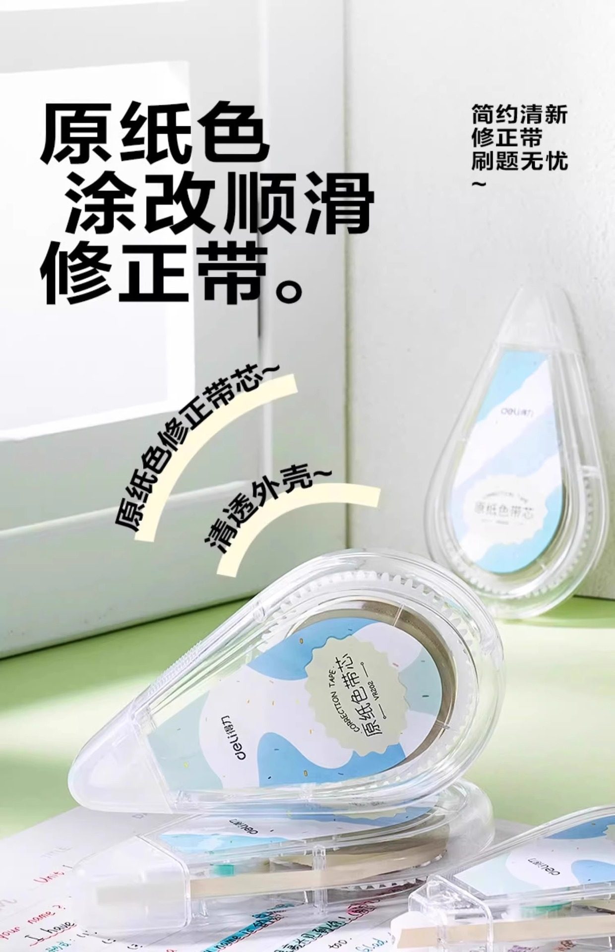 Deli/Deli Beige Correction Tape for Students, Invisible Correction Tape, Large Capacity, Simple Correction Tape