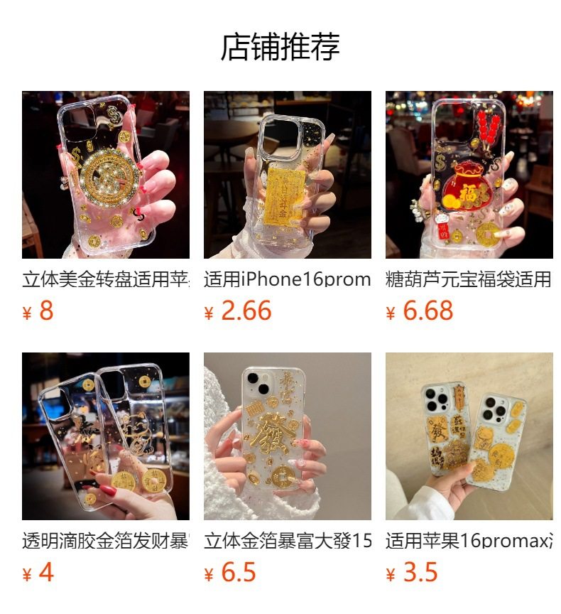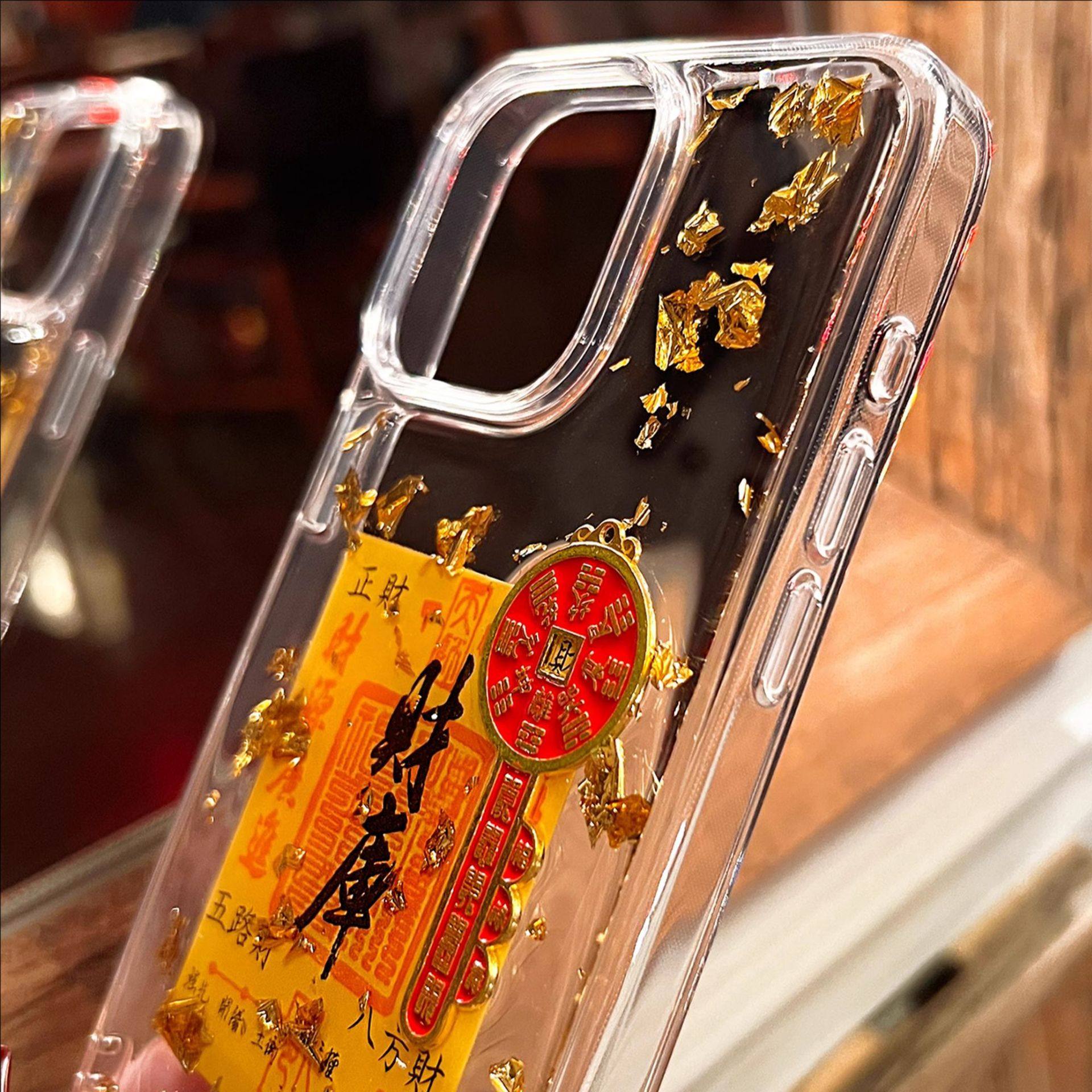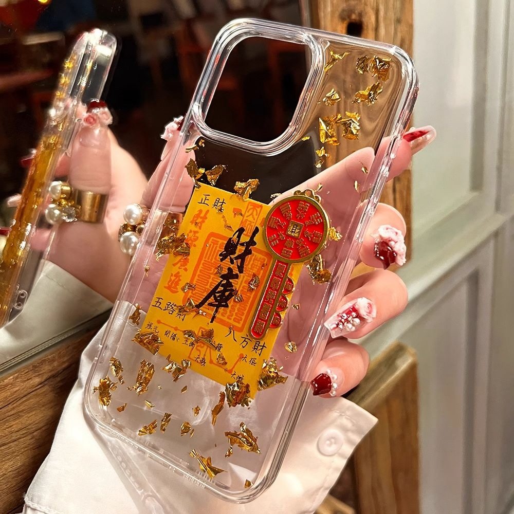 Good Luck and Wealth Glue Gold Foil Treasure Suitable for Apple 16Promax Mobile Phone Case Iphone15/14Pro Soft 13