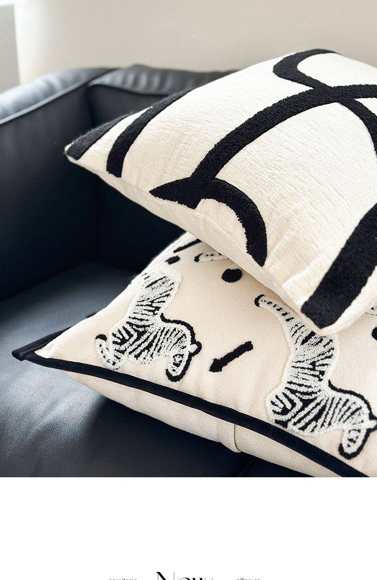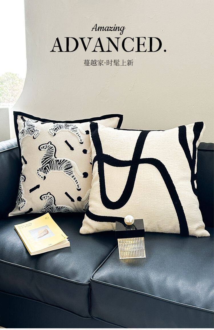 Modern Minimalist Sofa Black and White Ins Cushion Light Luxury Zebra Living Room Bedside Homestay Cushion Vintage Bay Window Pillowcase