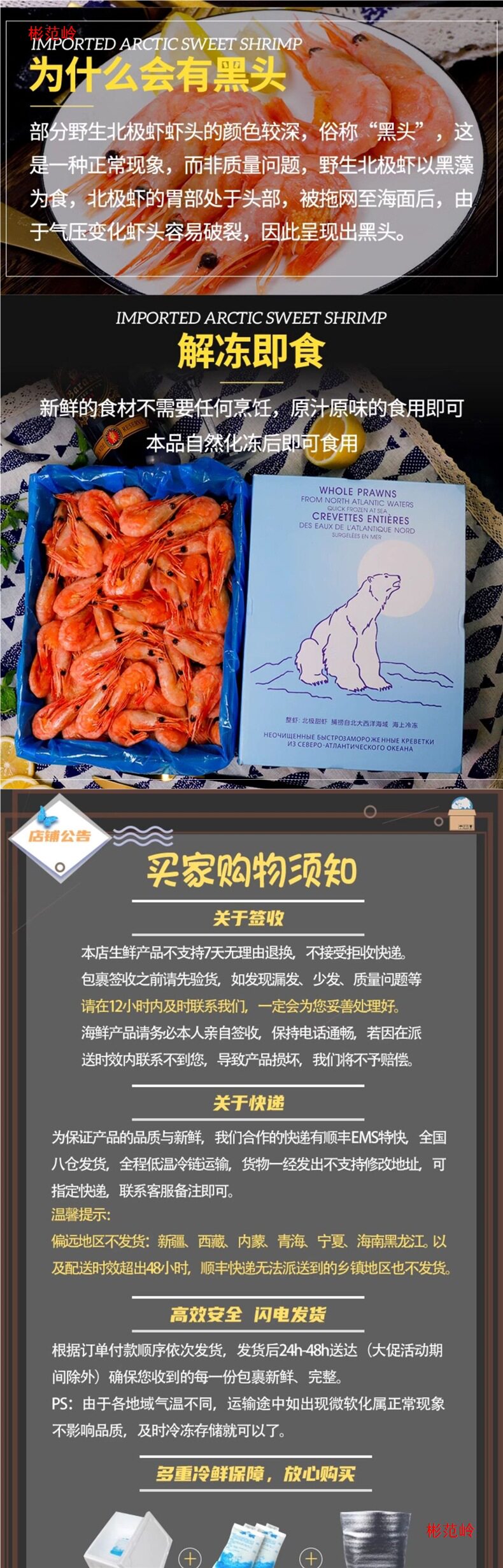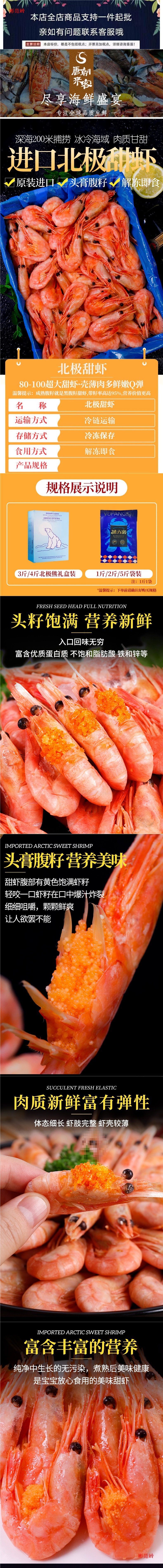 Arctic Sweet Shrimp, Polar Bear, Arctic Shrimp Sashimi, Ready-To-Eat Frozen Ice Shrimp with Heads, Bellies, Seeds, Large with Seeds, 2.5kg Yuan Treasure Shrimp