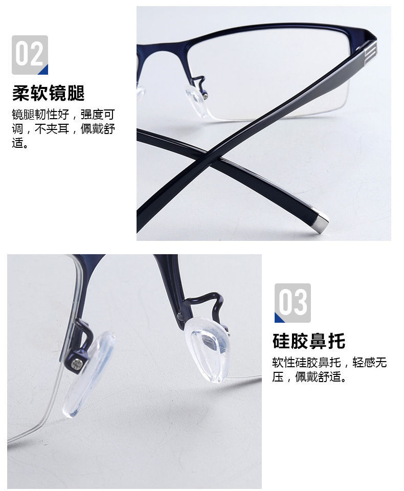 Myopia Glasses for Men with Degrees, Simple Full-Frame Glasses, Half-Frame Fashionable Glasses, Finished Glasses for Myopia