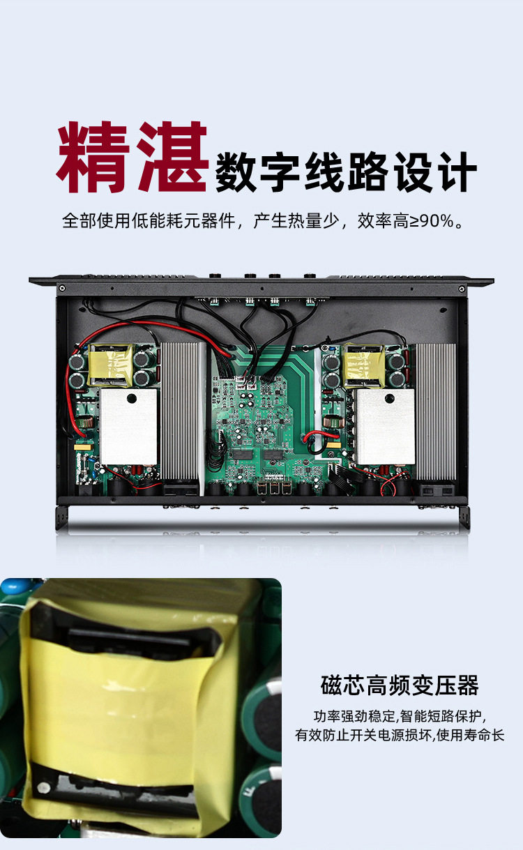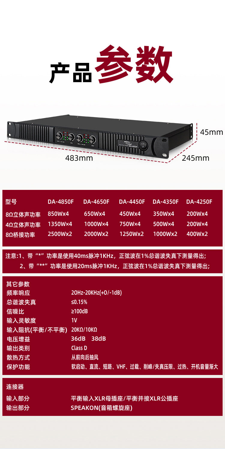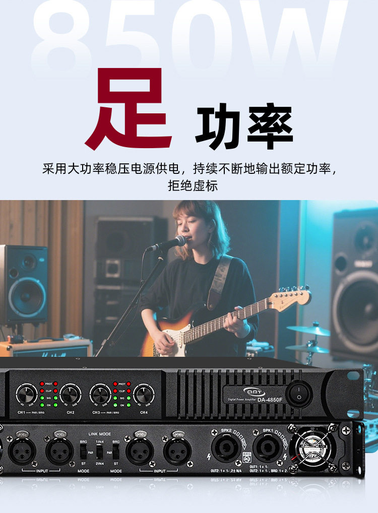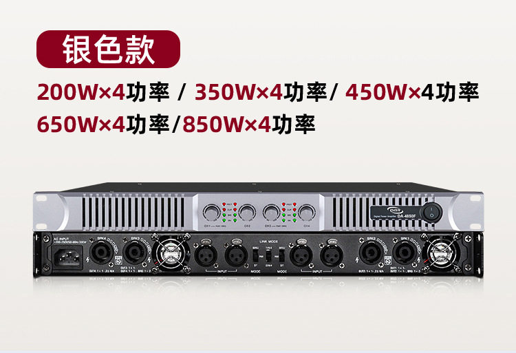 Amplifier 2025 Class D 4-Channel Pure Power Amplifier for Performance and Conference Rooms, 1U Digital Amplifier 350W