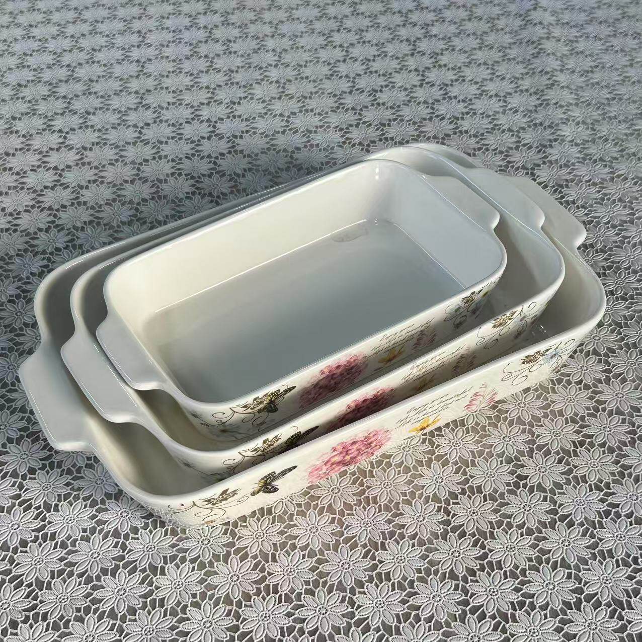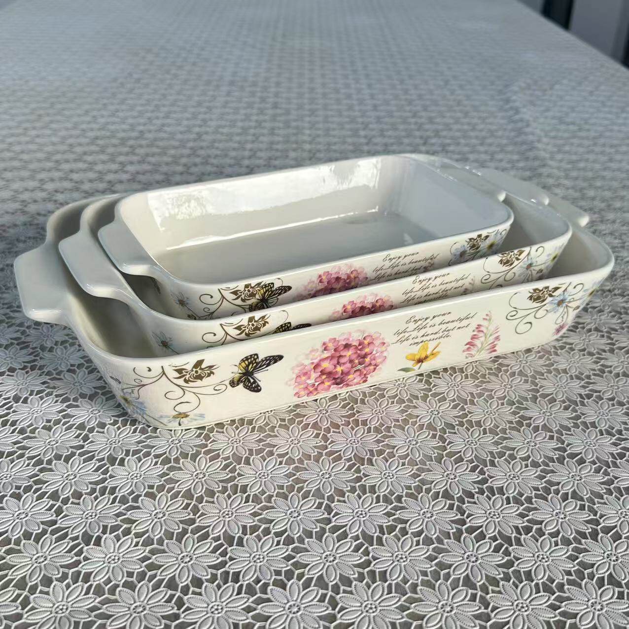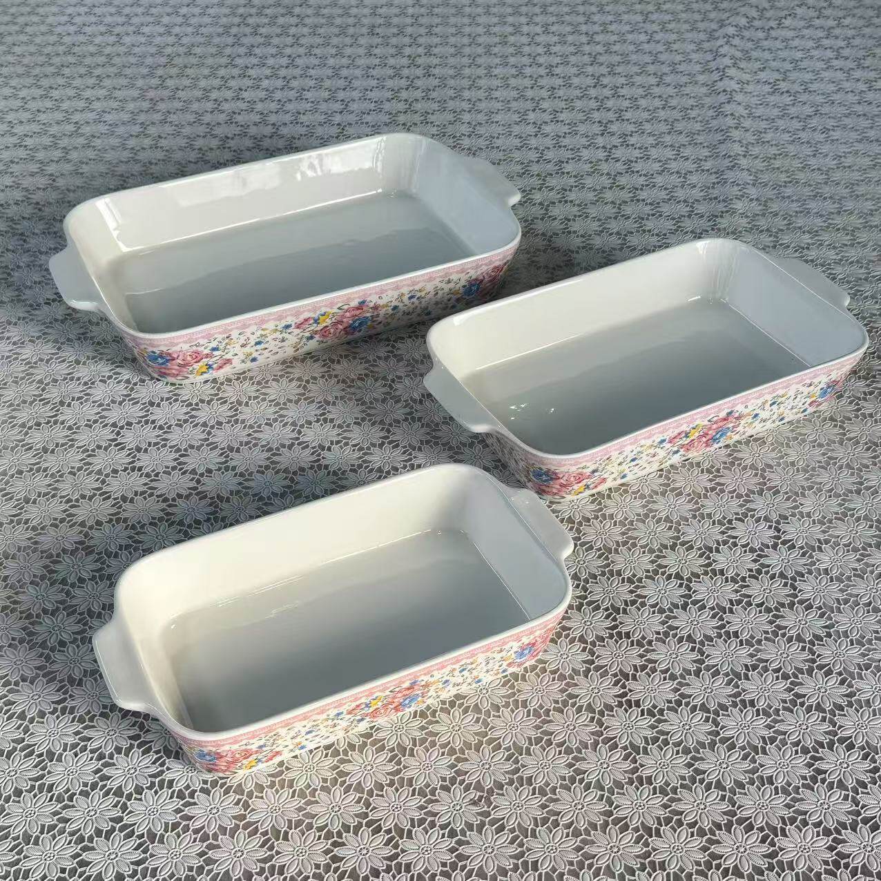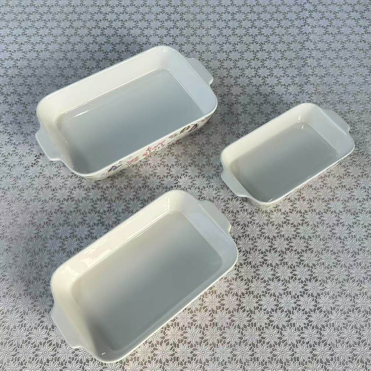 Foreign Trade Export Scandinavian Double-Eared Baking Pan Decal Household Ceramic Tableware Microwave Oven Rectangular Baking Pan Set