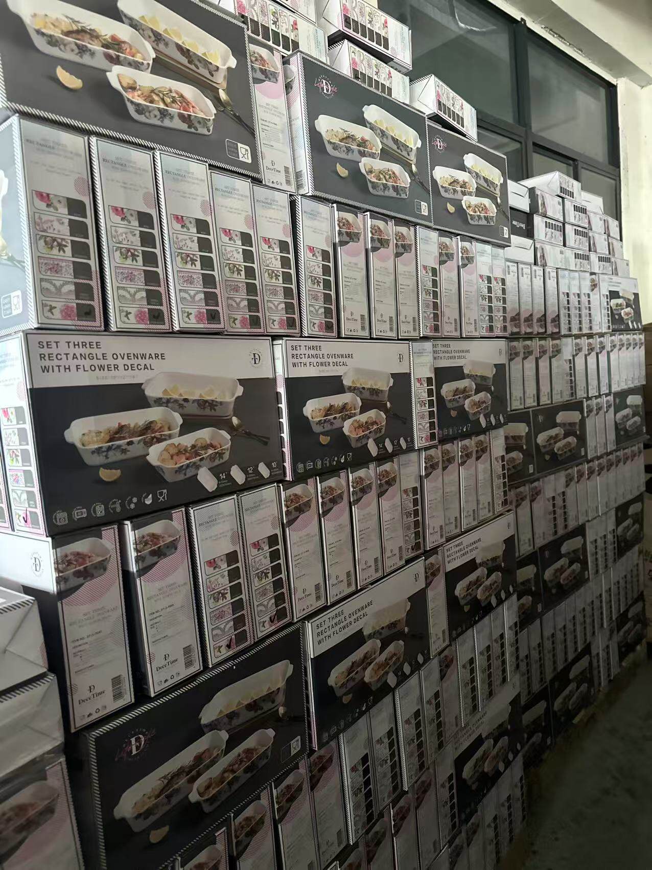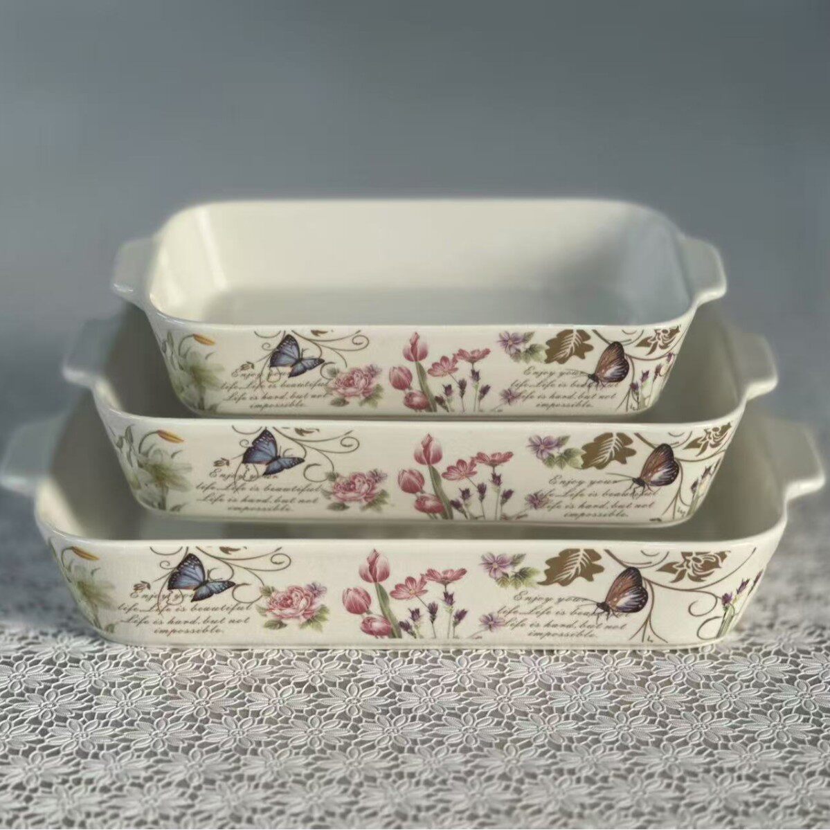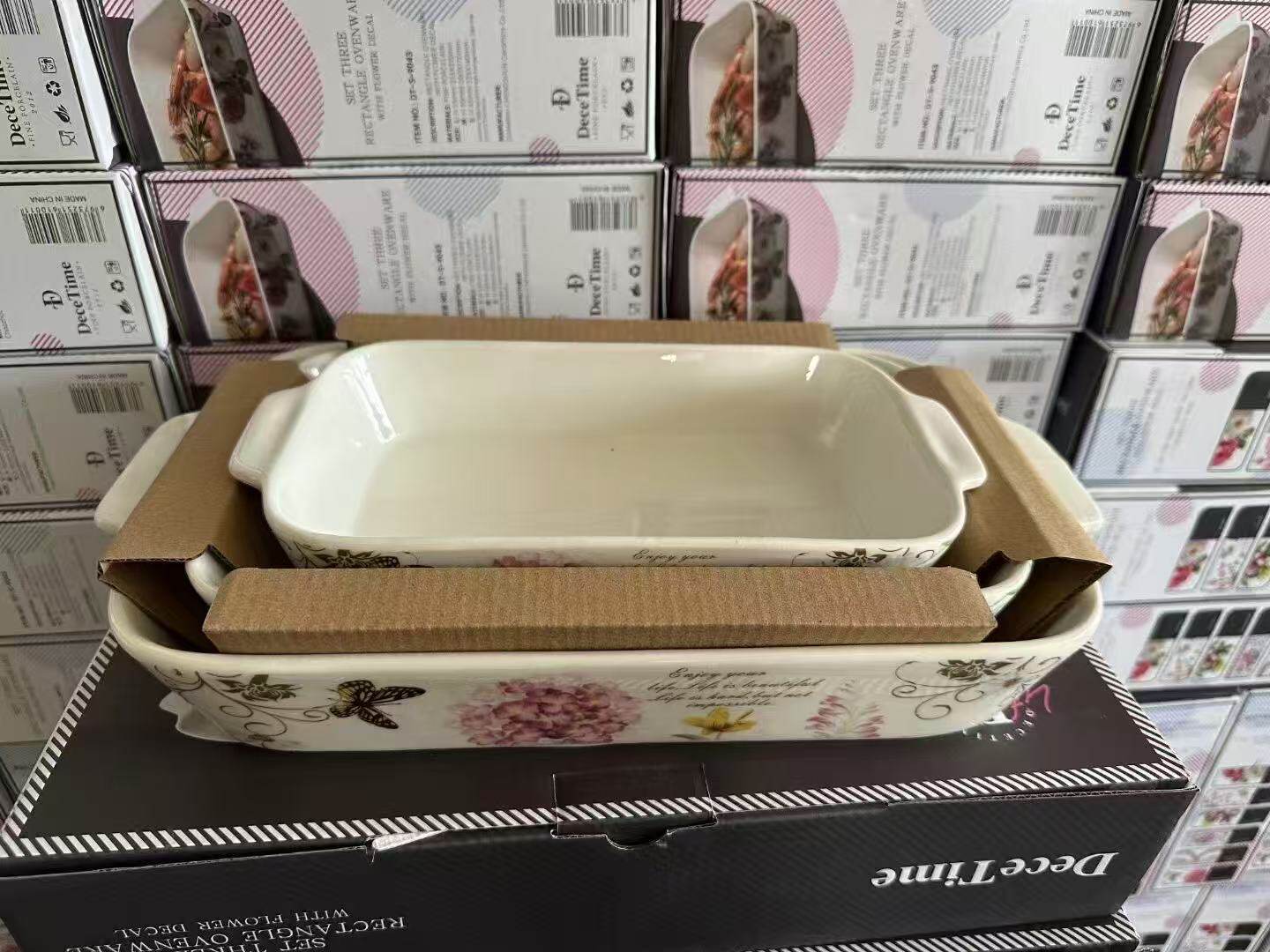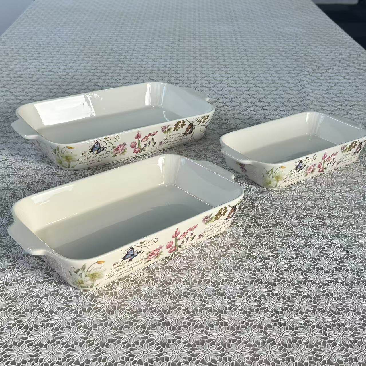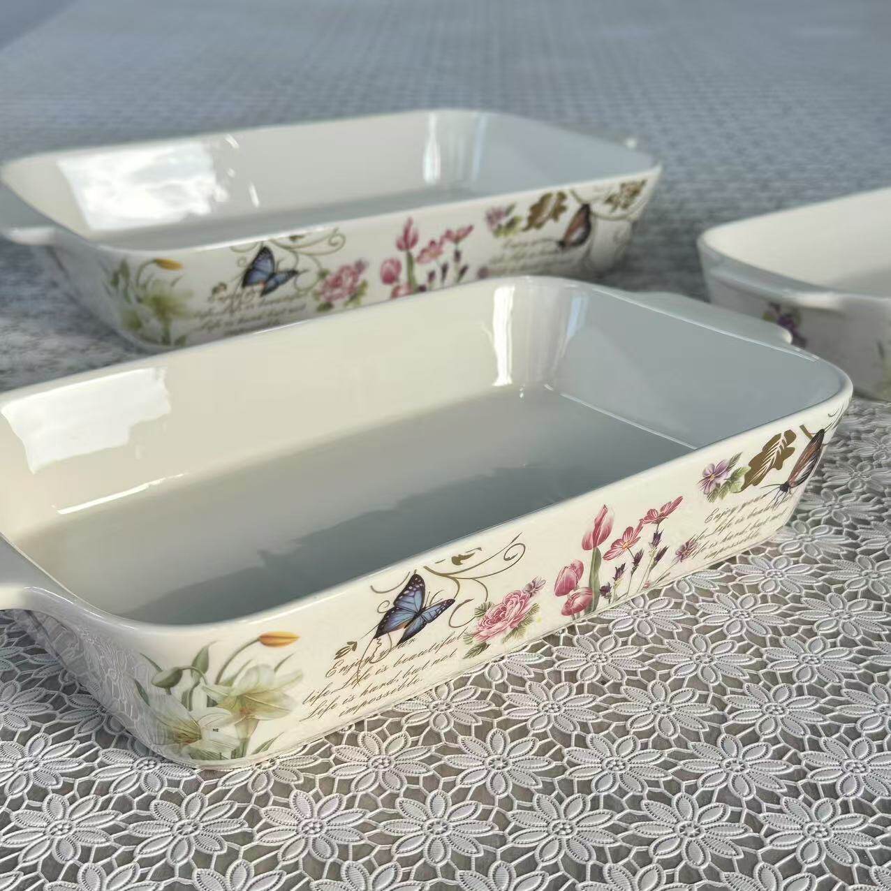 Foreign Trade Export Scandinavian Double-Eared Baking Pan Decal Household Ceramic Tableware Microwave Oven Rectangular Baking Pan Set