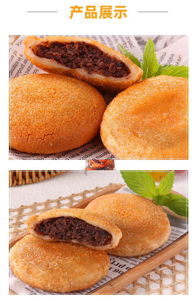 Traditional Fried Cake with Red Bean Filling Semi-Finished Glutinous Rice Cake Fried Chinese Pastry Red Bean Commercial Sticky Spatula